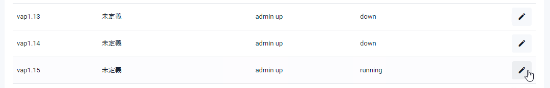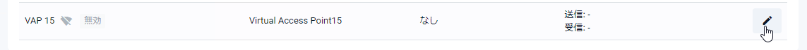 - 「無線管理」画面「無線1」タブに戻ったら、「VAP」欄のVAP 15列の右端にある編集ボタン(鉛筆アイコン)をクリックします。