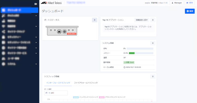 Note初回起動時(本製品を箱から出して何も設定を行っていない状態)にAMFネットワーク未検出時の拡張動作が機能した場合、本製品には一時的なIPアドレス 192.168.1.1 が自動設定され、Webサーバー機能も自動的に有効化され、以下の手順にしたがうことで、本製品への事前設定なしに Web GUIへのアクセスが可能です。