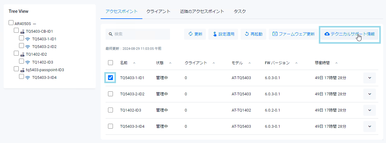 Noteアクセスポイントのファームウェア更新は1台ずつ行ってください。状態が更新中になるまで次のアクセスポイントのファームウェア更新は行わないでください。