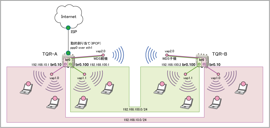 | LAN側(br0.100)IPアドレス | 192.168.100.1/24 | 192.168.100.2/24(管理用) |