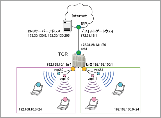 | LAN側(br2)IPアドレス | 192.168.100.1/24 |