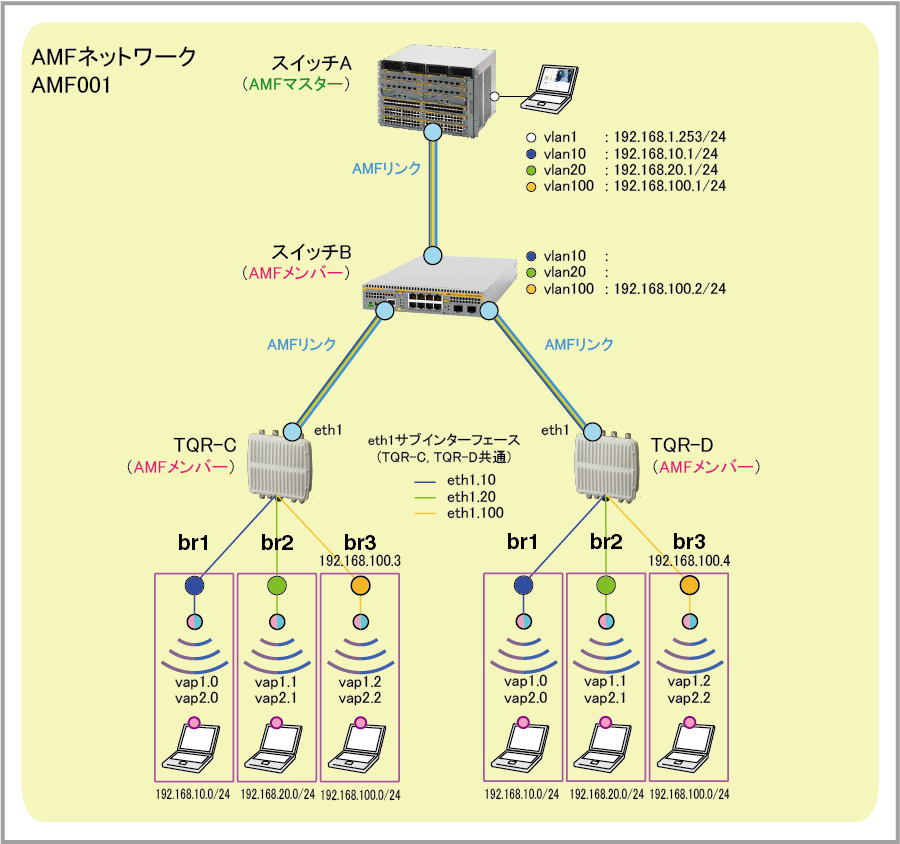 | vlan100 IPアドレス | 192.168.100.2/24(管理用) | |