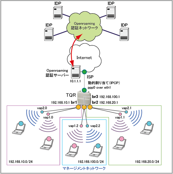 Note本設定例では、2.4GHzと5GHzの同一番号のVAPをブリッジに所属させ同じセグメントで運用しています。
