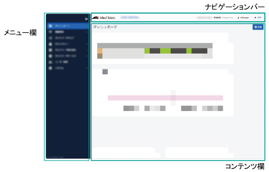 前図と次図は画面構成やナビゲーションバーの項目を示すことが目的のため、細部は省略しています。