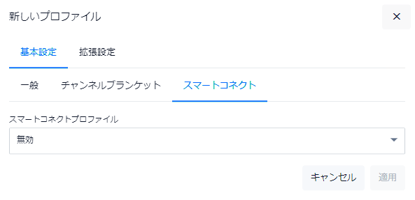 | 名前 | 対象SCプロファイルの名前を指定します。64文字以内。半角英数字と記号( ! # $ % & ' ( ) * + , - . / : ; < = > @ [ \ ] ^ _ ` { | } ~ )を使用可能です |