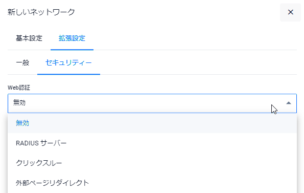 | RADIUS 認証グループ | 認証用RADIUSサーバーグループを選択します。デフォルトは「無効」です。 |