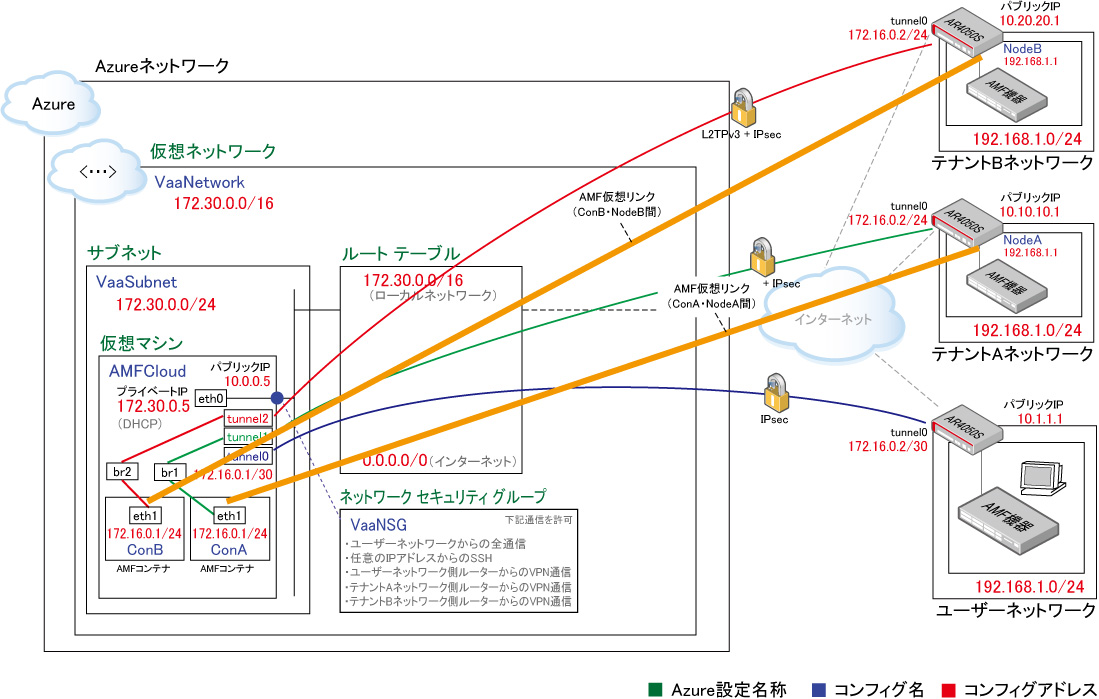 以上で仮想リンクの設定は完了です。これ以降、支社側のノード BR101は、AMFネットワークAMF001上において、本社側のAMFノードと同様に扱うことができます。さらに、BR101 配下のノードに対しても、通常のAMF設定を行うことでAMFネットワークAMF001に参加させることが可能です。