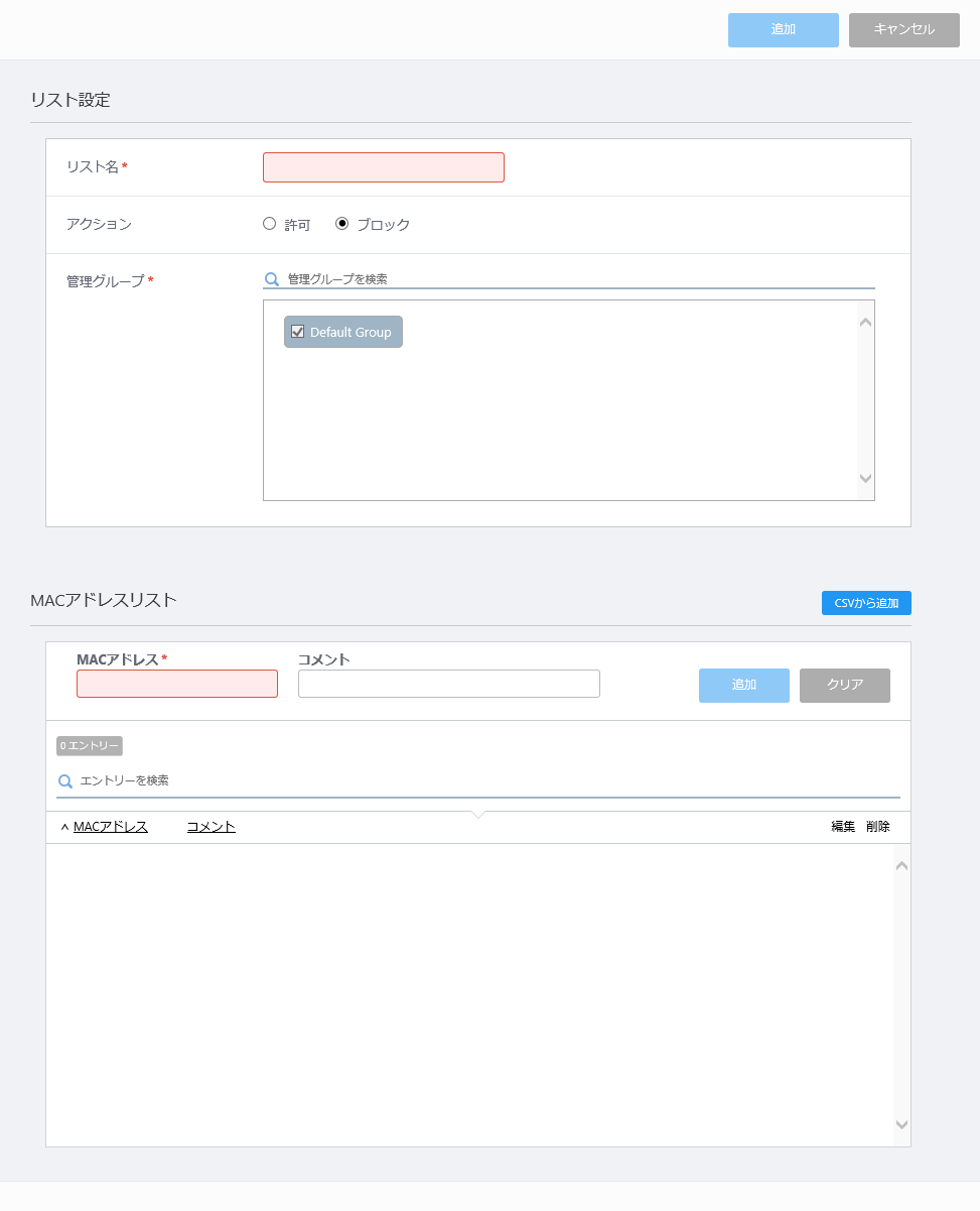 | リスト名 | MACアドレスリストのリスト名を入力します。 |