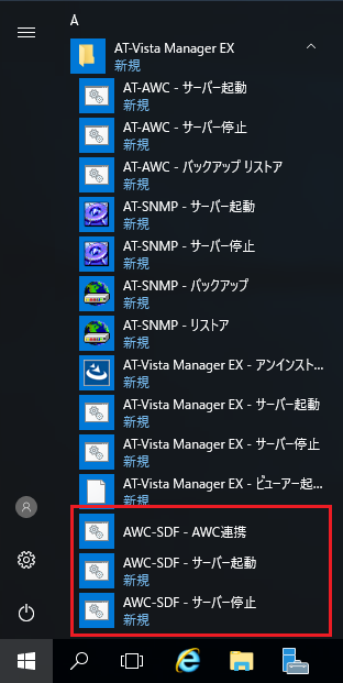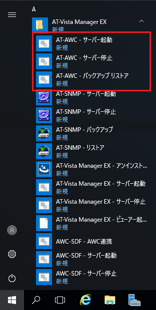 NoteWindows Server 2019では、Windowsスタートメニューの「AT-Vista Manager EX」グループに、一部のメニュー項目が正しく作成されない場合があります。