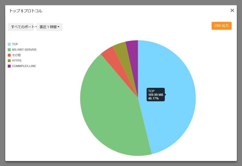 Note各グラフの集計情報は、トラフィックマップを表示した時点の内容です。トラフィックマップ表示後に時間が経過した場合、最新の情報を表示するには、Webブラウザーの画面を再読み込みしてください。