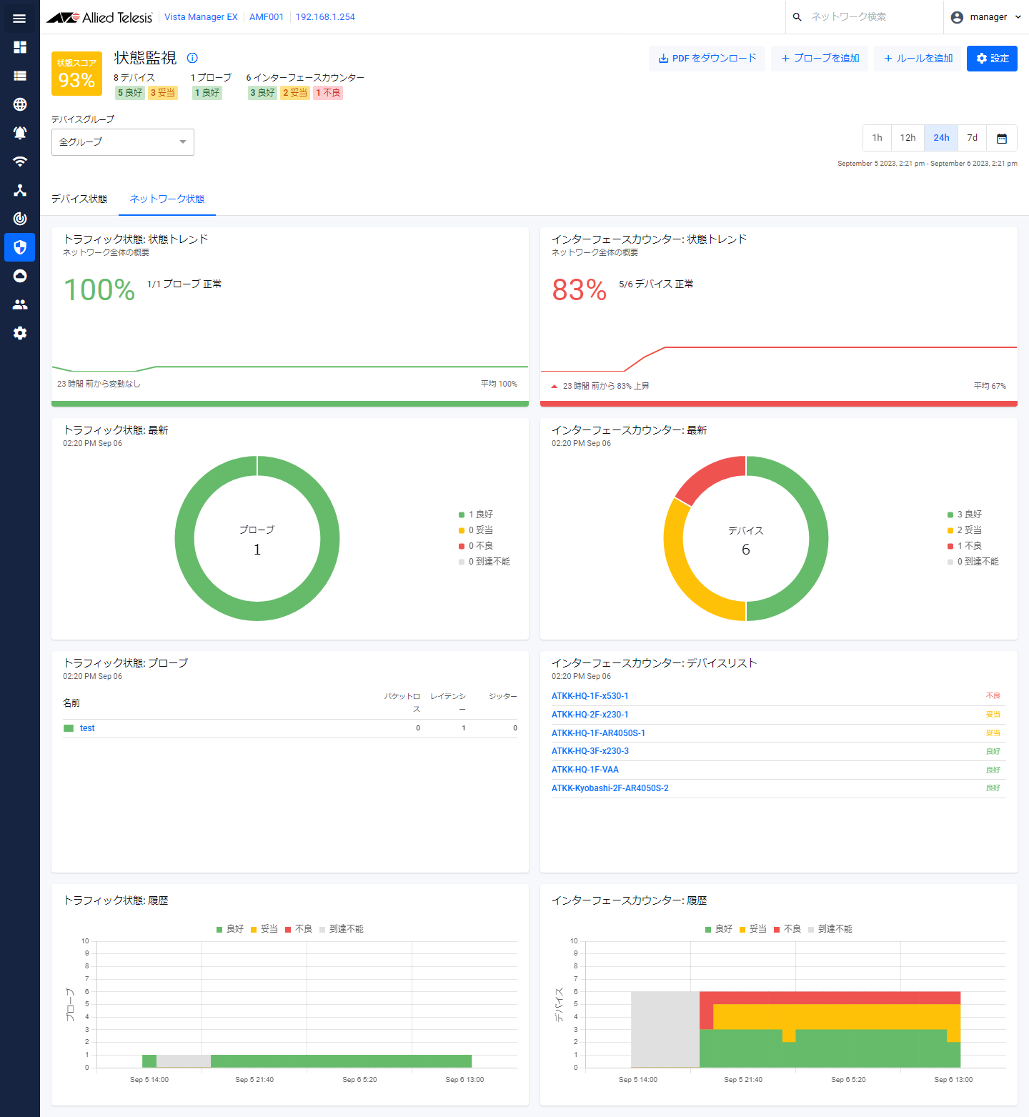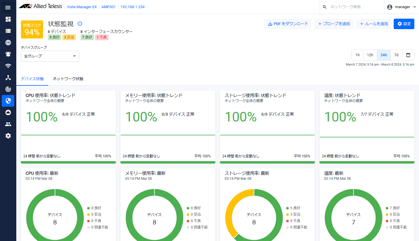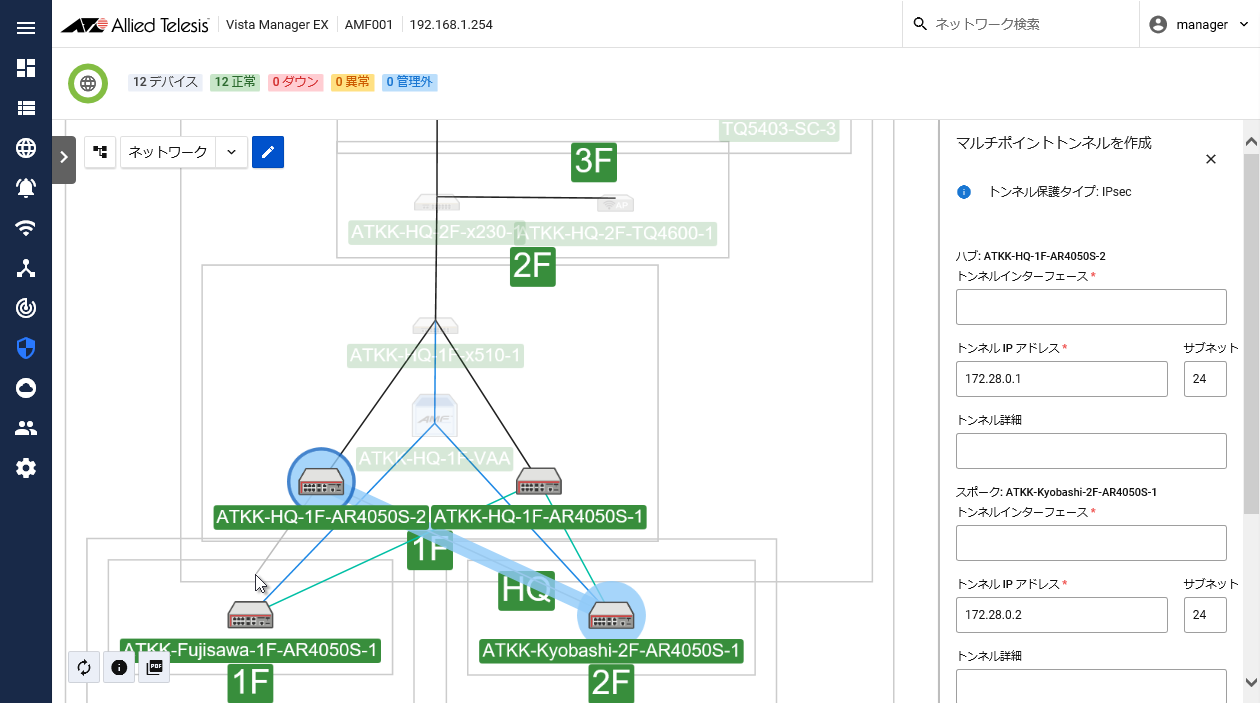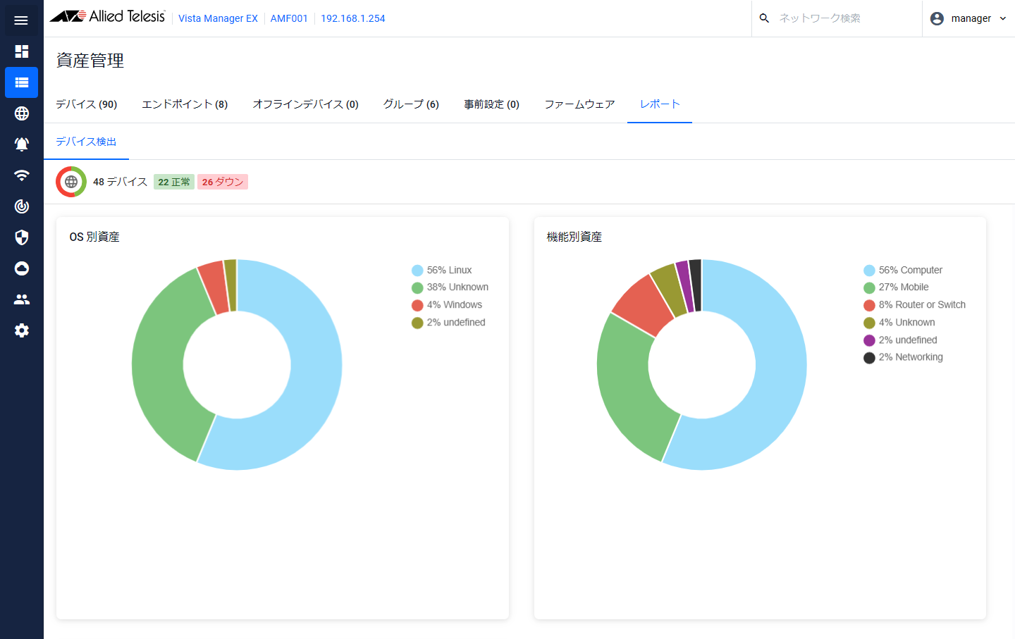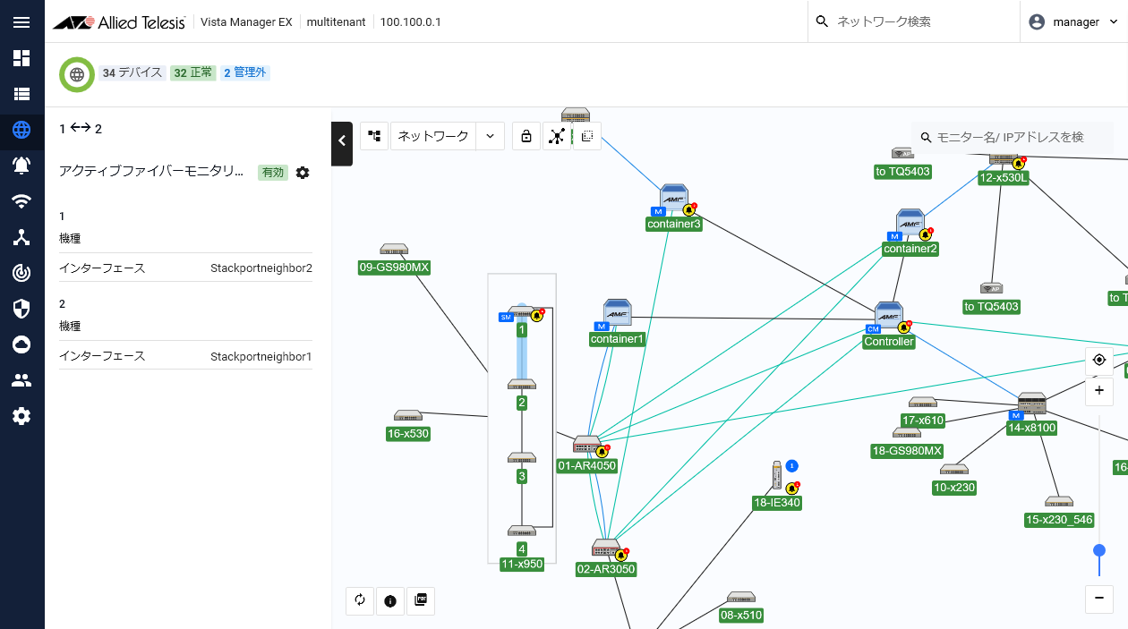 AT-Vista Manager EXは、弊社スイッチやルーター/UTMなどのAMF(アライドテレシスマネージメントフレームワーク)対応製品で構成されるAMFネットワークを自動認識し、Webブラウザー上でグラフィカルに管理するためのネットワークマネージメントソフトウェアです。
