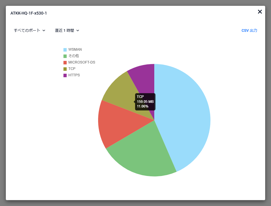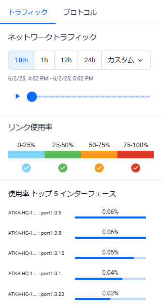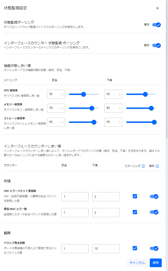 トポロジー | ネットワークマップや資産管理に用いる一般的なデバイス情報の保管に使用している領域の容量を表示します。 |