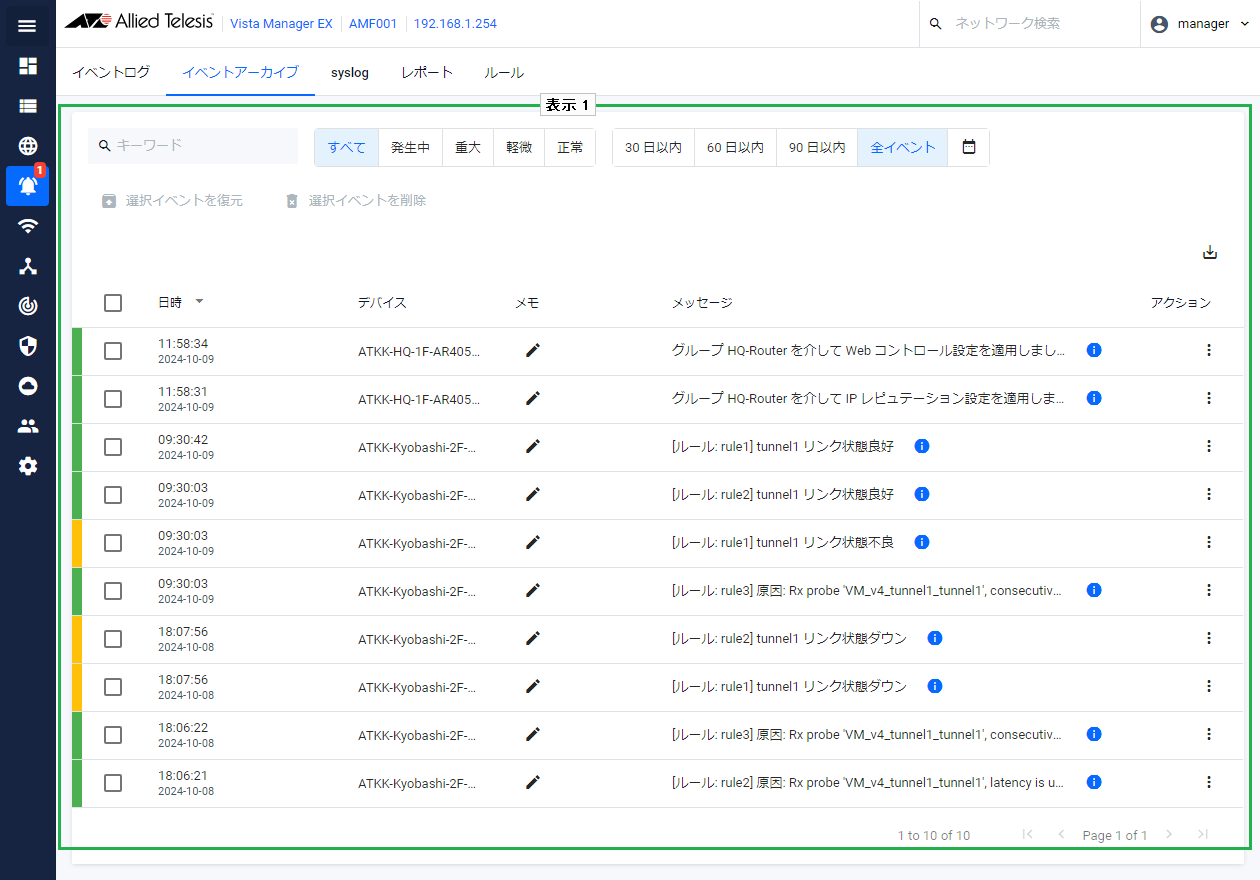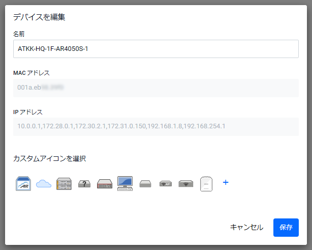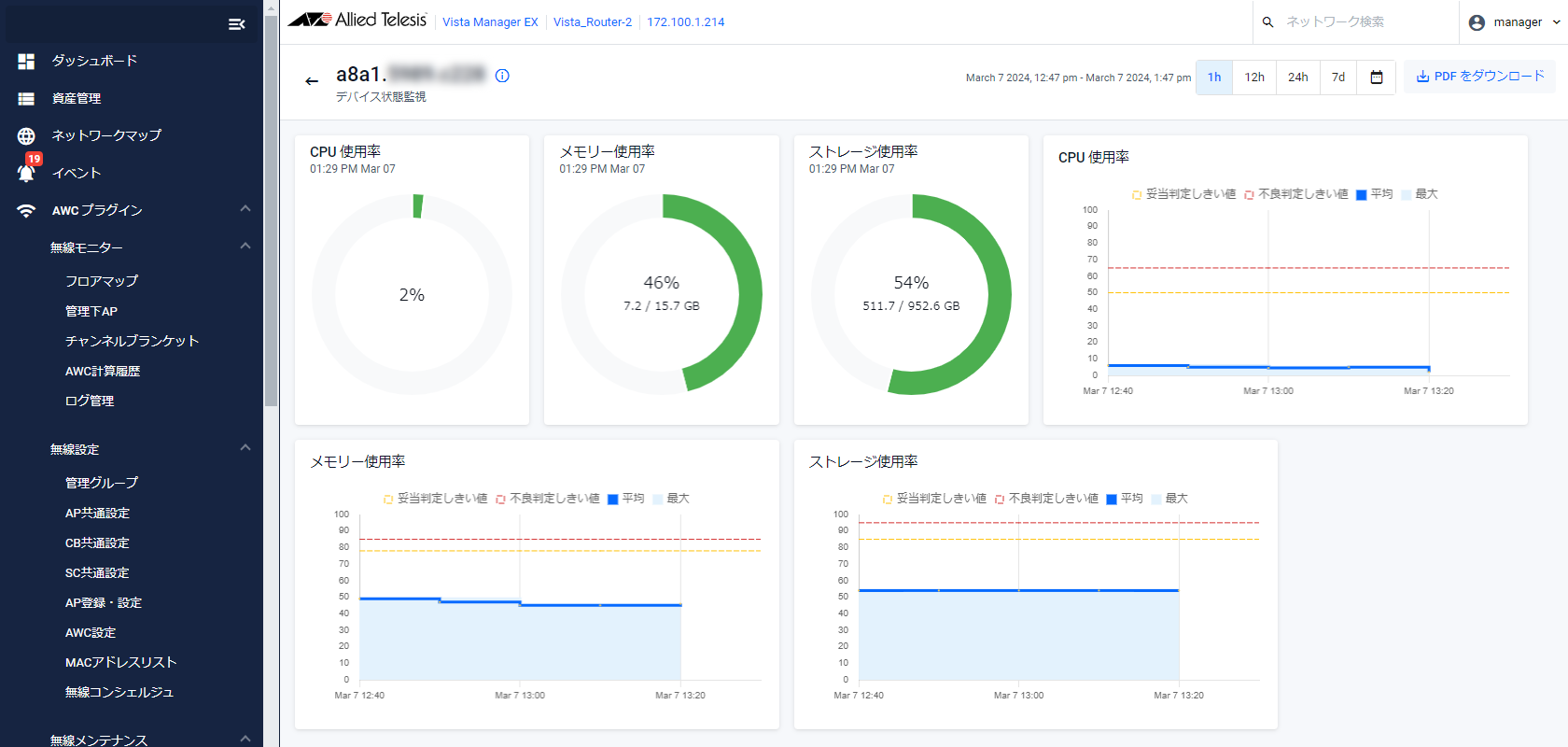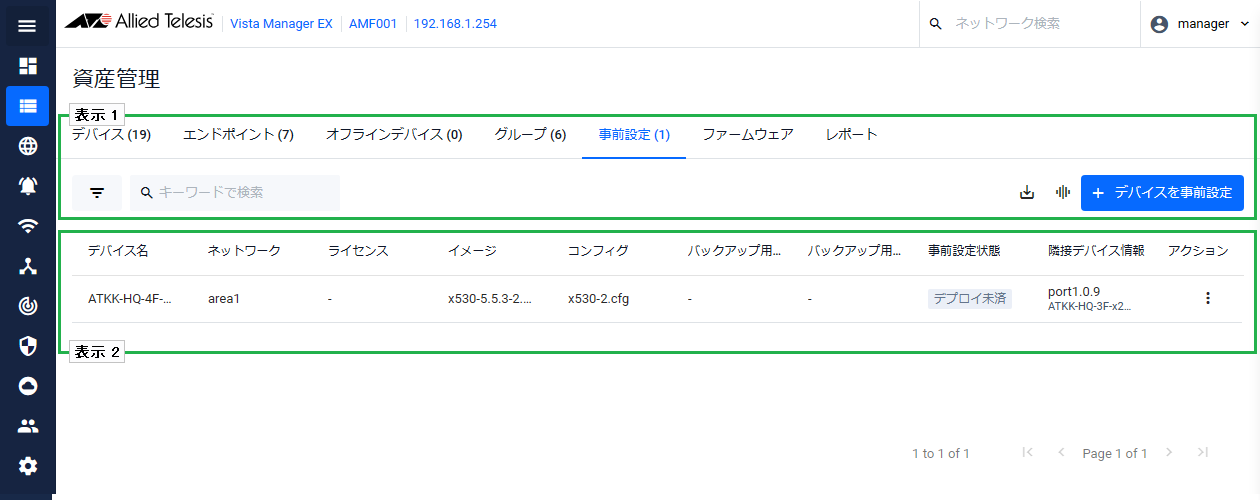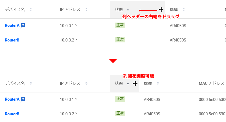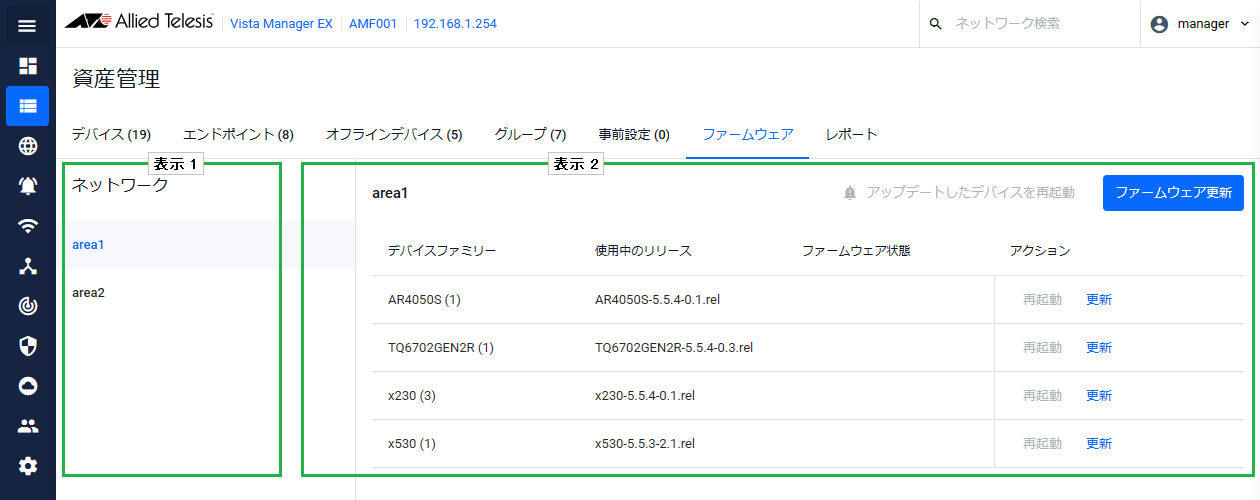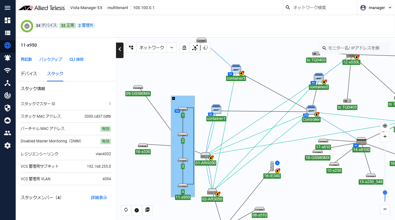 デバイス名 | AMF/AMF Plusマスターまたはコントローラーのデバイス名を表示します。 | |||||||||||||