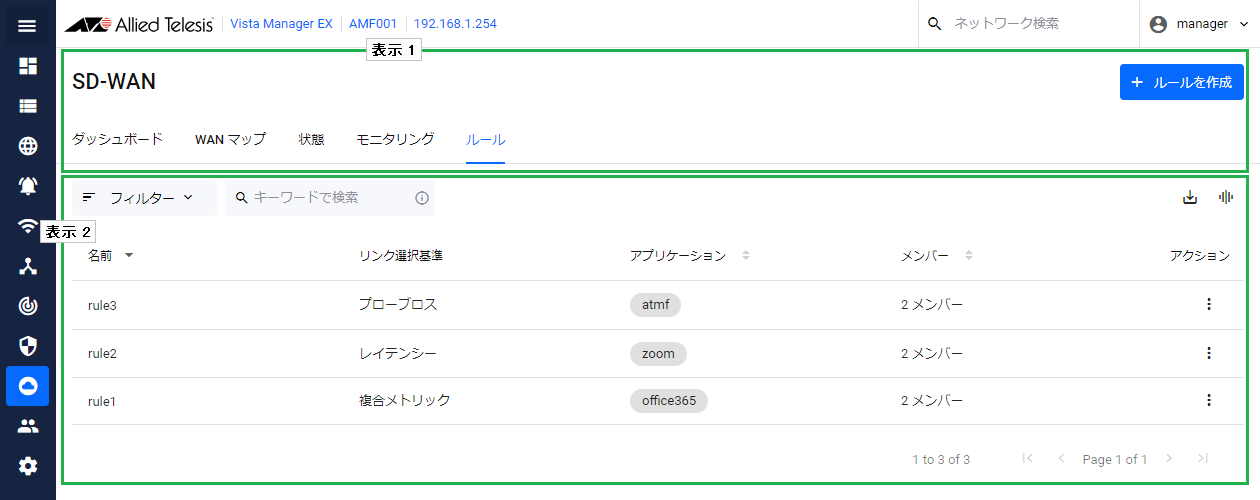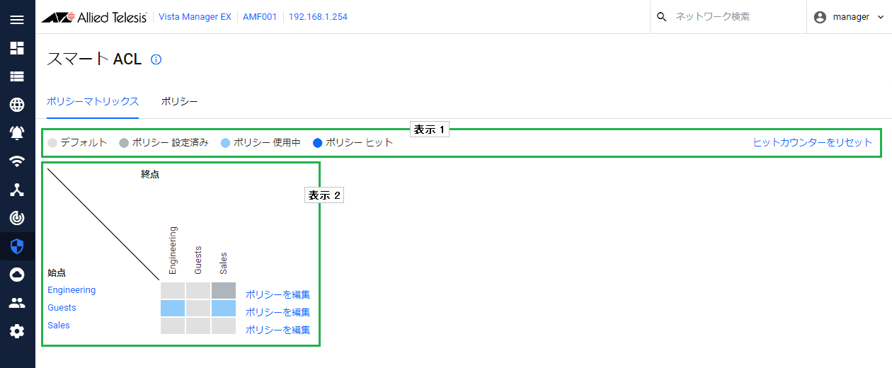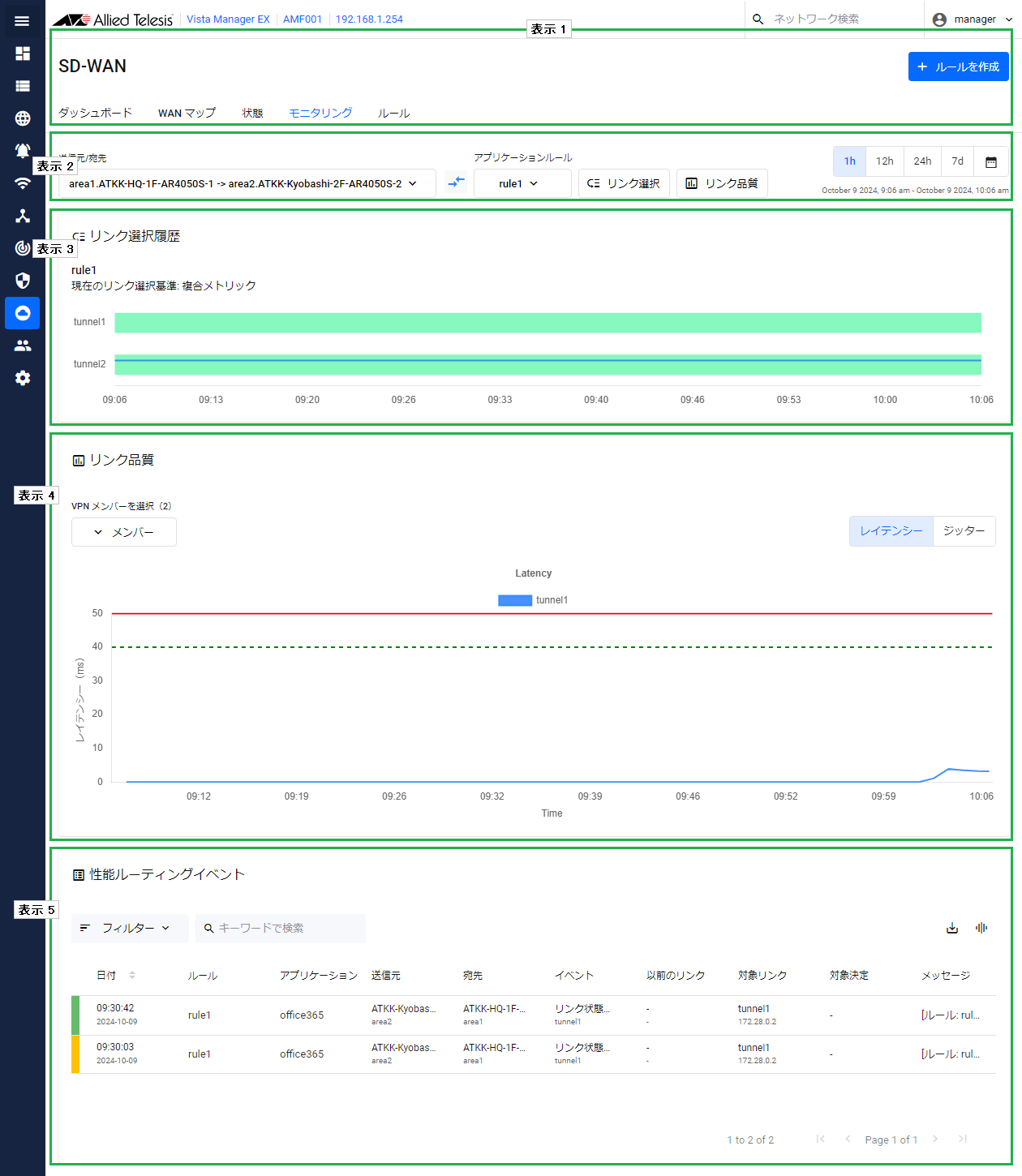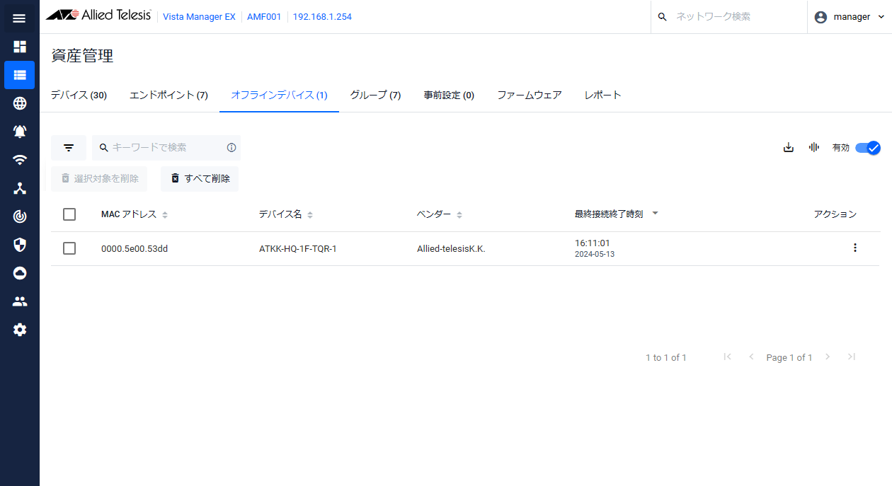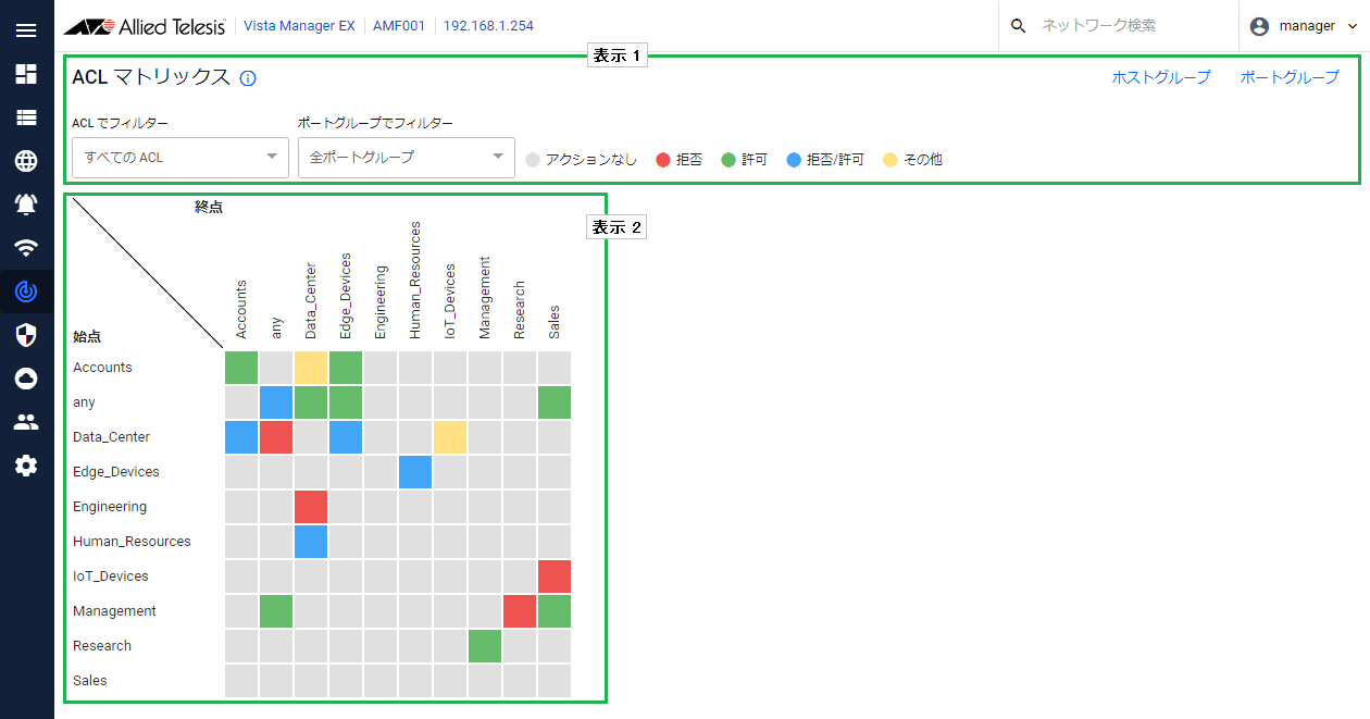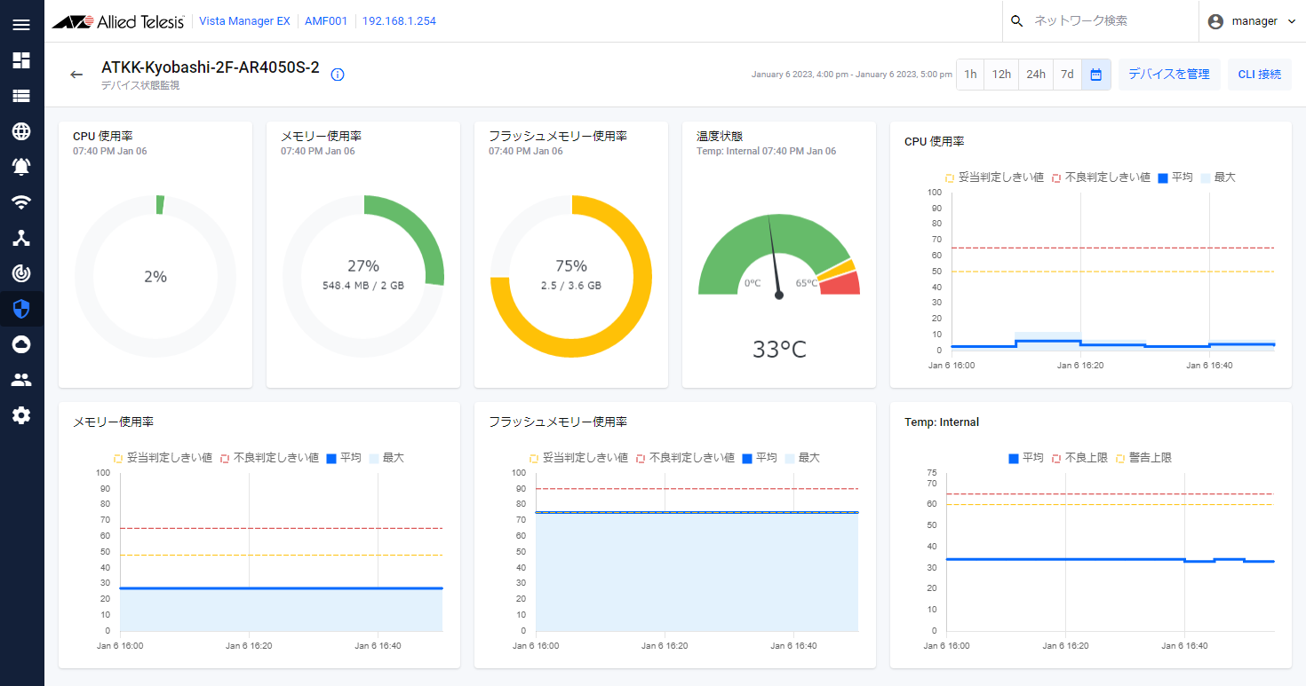 デバイス名 | AMF/AMF Plusマスターまたはコントローラーのデバイス名を表示します。 | |||||||||||||
