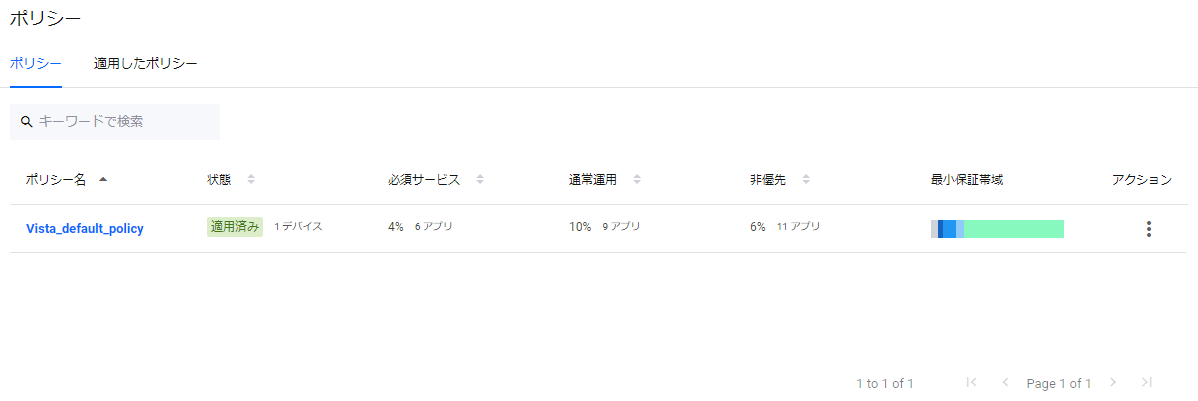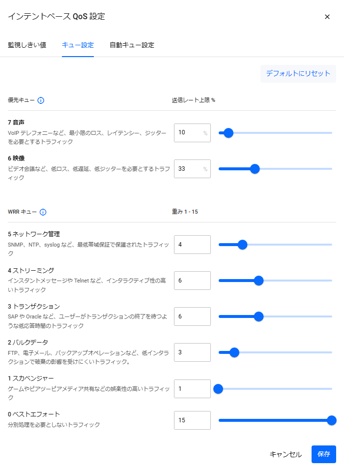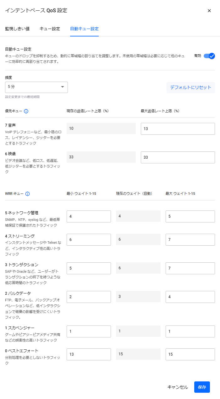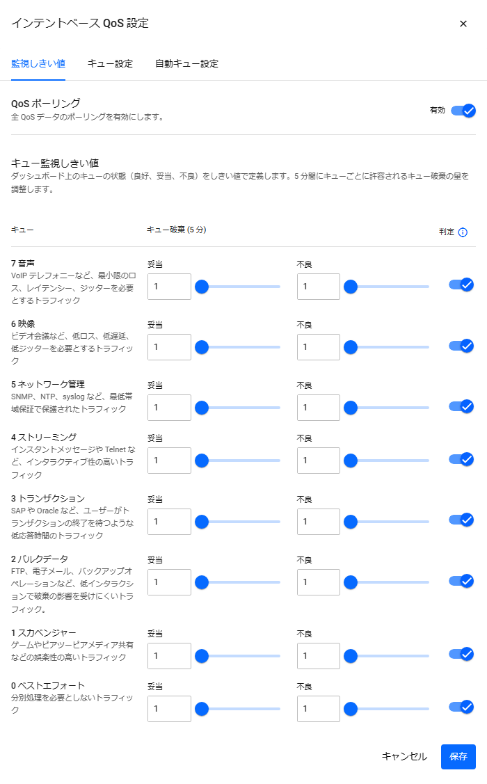 インテントベースQoS | インテントベースQoS監視データの保管に使用している領域の容量を表示します。 |