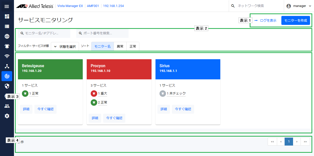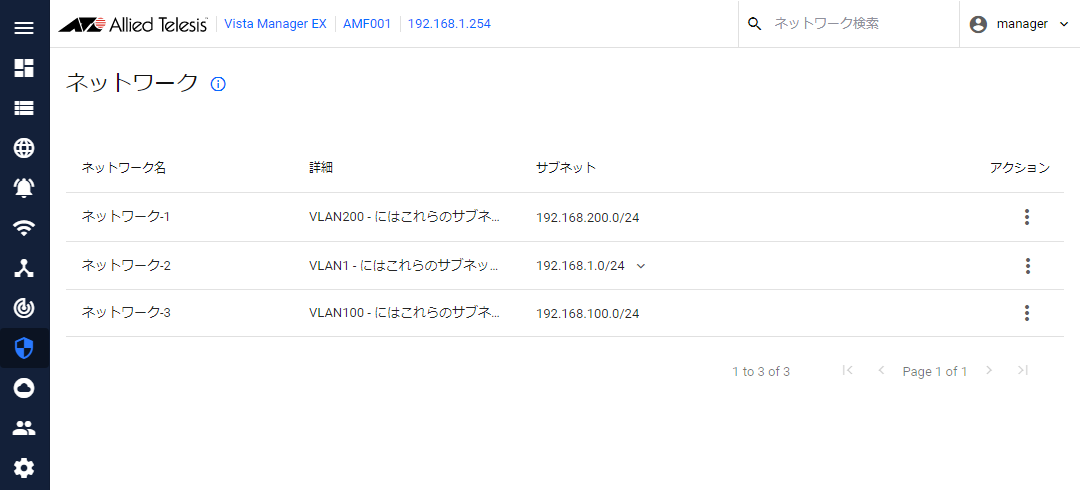 Vista Managerアプリケーション | 192.168.1.3 | AVM EXサーバーとして動作。 | |