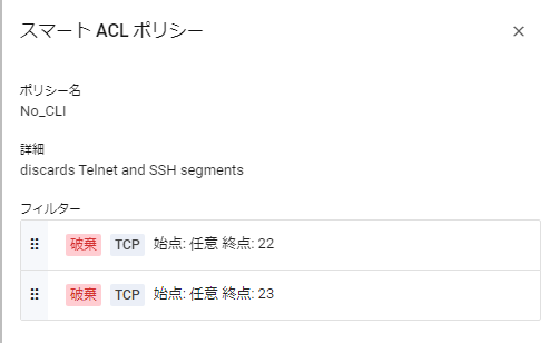 スマートACL | スマートACL設定と使用データの保管に使用している領域の容量を表示します。 |