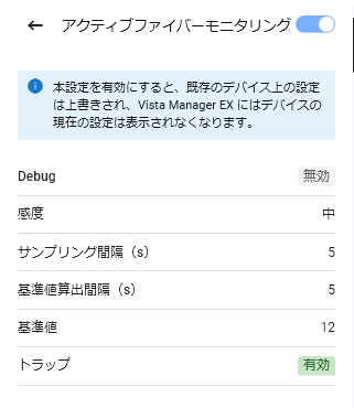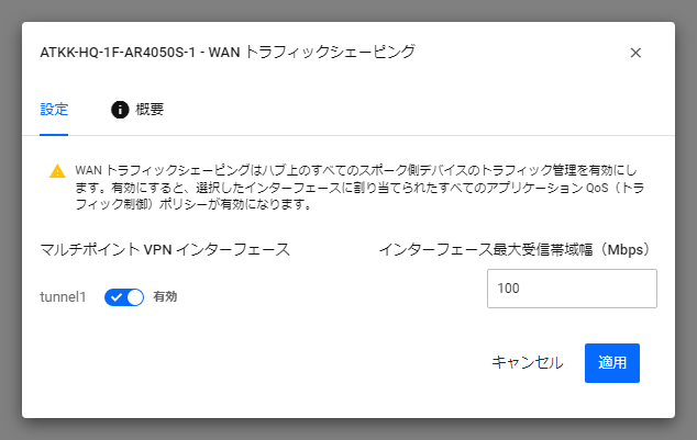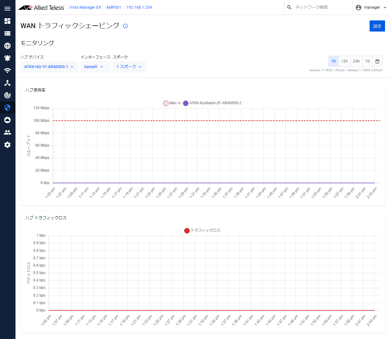 traffic-control controller vista interface eth1 dynamic-virtual-bandwidth controller vista initial 10mbit本設定が行われている場合、CLI上でトラフィックコントロールモードに移行すると、外部コントローラー(AVM EX)から制御されていることを示すWarningメッセージが表示されます。なお、AVM EXからの設定内容は下記のコマンドで確認できます。