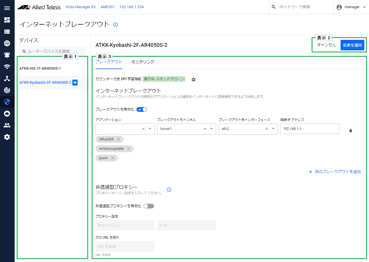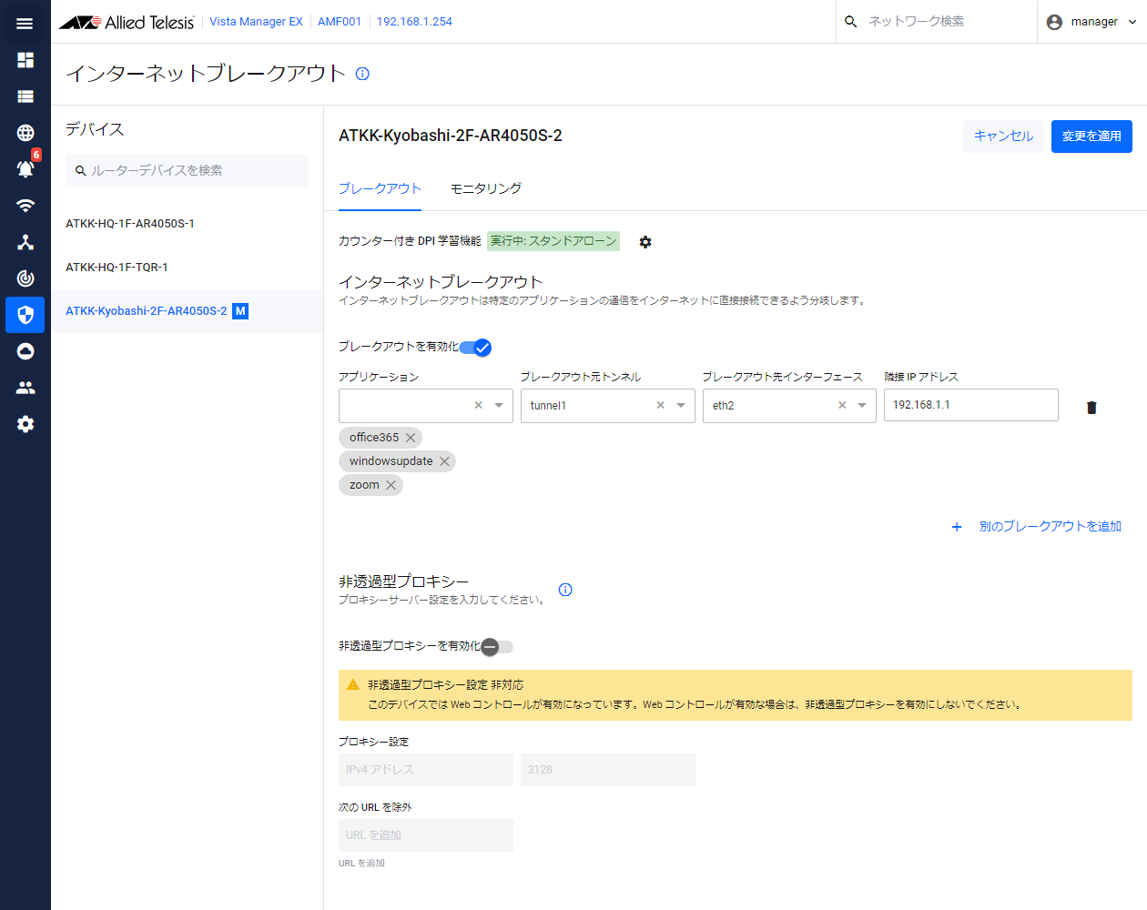 AMFデバイスや無線AP、閲覧環境のコンピューターとの通信がプロキシーサーバーを経由すると、AVM EXの動作に影響を与える場合があります。