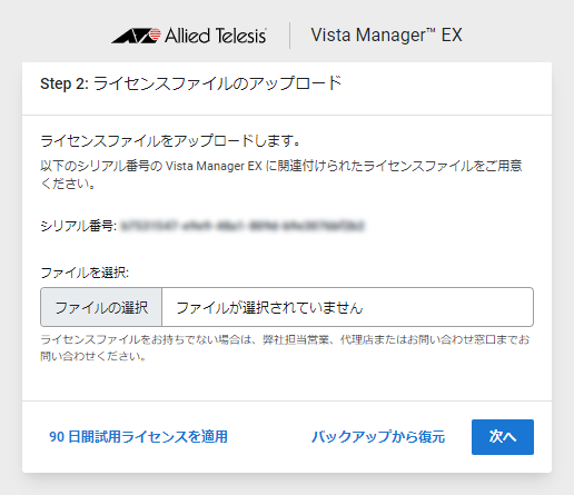 試用ライセンスの適用については、後述の「試用ライセンスの適用」をご覧ください。