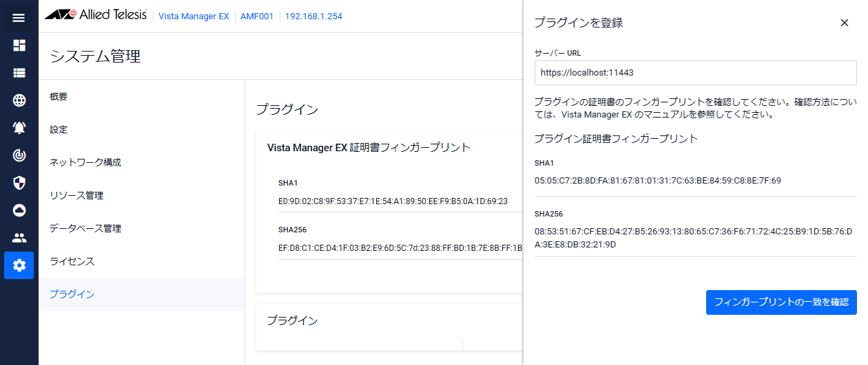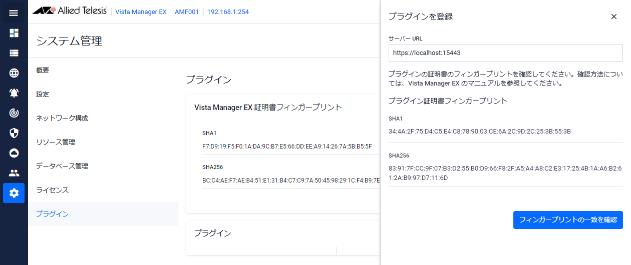 NoteAT-VST-VRT版ではプラグイン証明書のフィンガープリントの確認方法はありません。これは同一ネットワーク上に多数のAVM EXサーバーやプラグインサーバーが存在する場合の確認のためのものであり、通常、正しいアドレスを指定しているときは必要ありません。