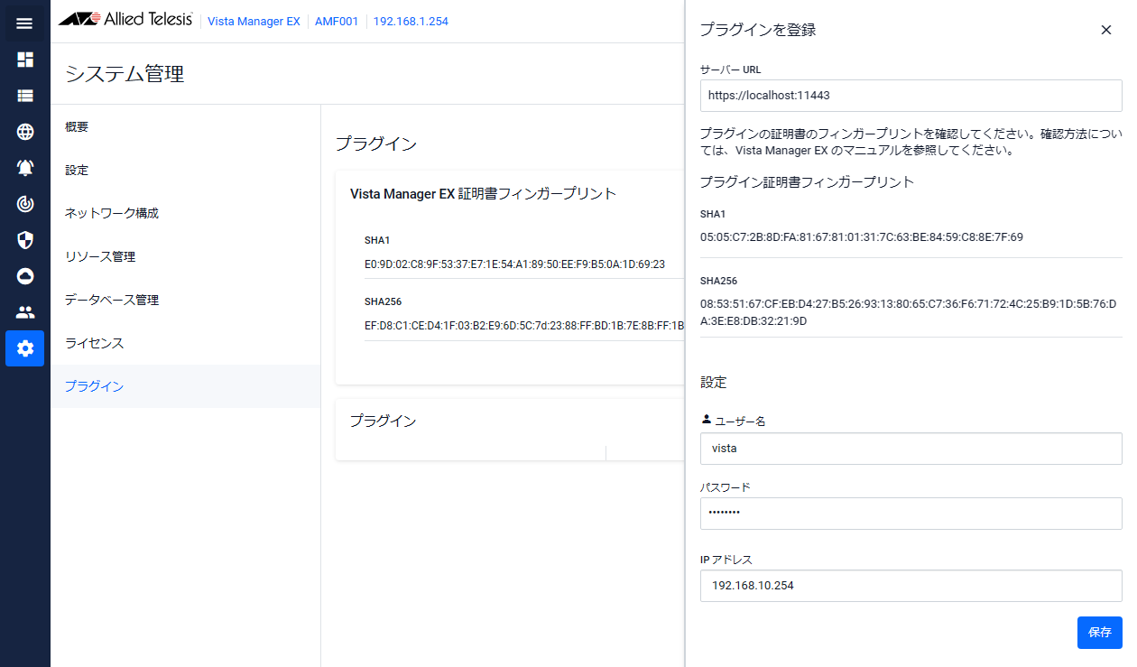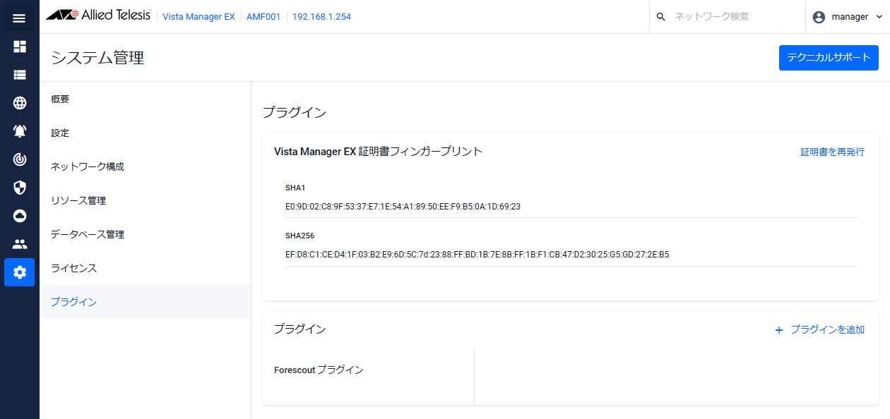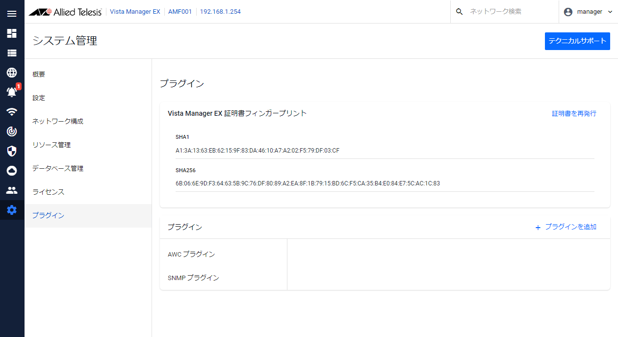 NoteAWCプラグインを登録後、無線APを管理するためには、AWCプラグインのシステム設定画面にて、AWCプラグインの外部IPアドレスを適切に設定する必要があります。詳しくは、「AWCプラグイン リファレンスマニュアル」をご覧ください。
