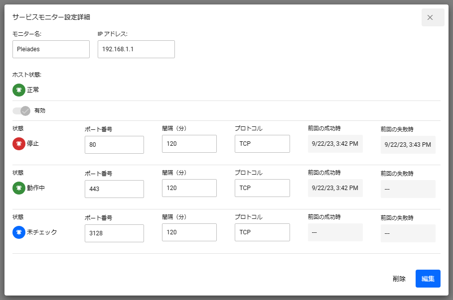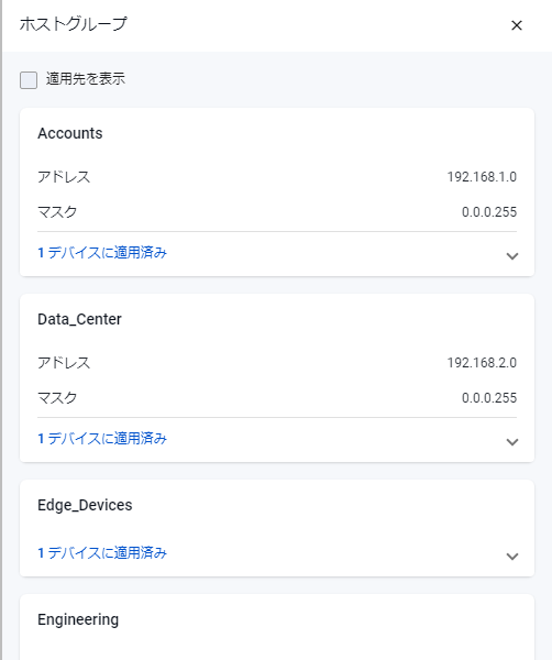 機器・アプリケーション名 | IPアドレス | 説明 | |