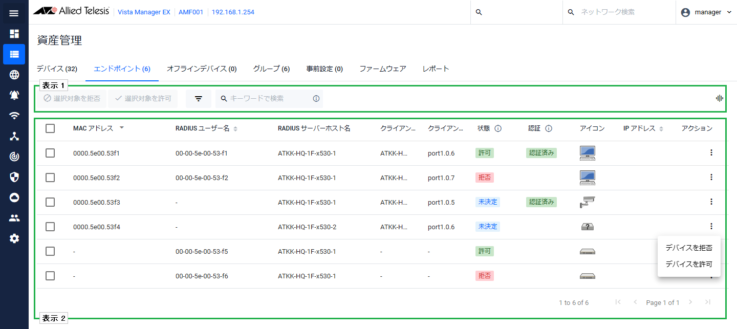 また、AMFコントローラー、AMFマスターが別記されている場合は、「AMFデバイス」はAMFメンバーを指すことがあります。