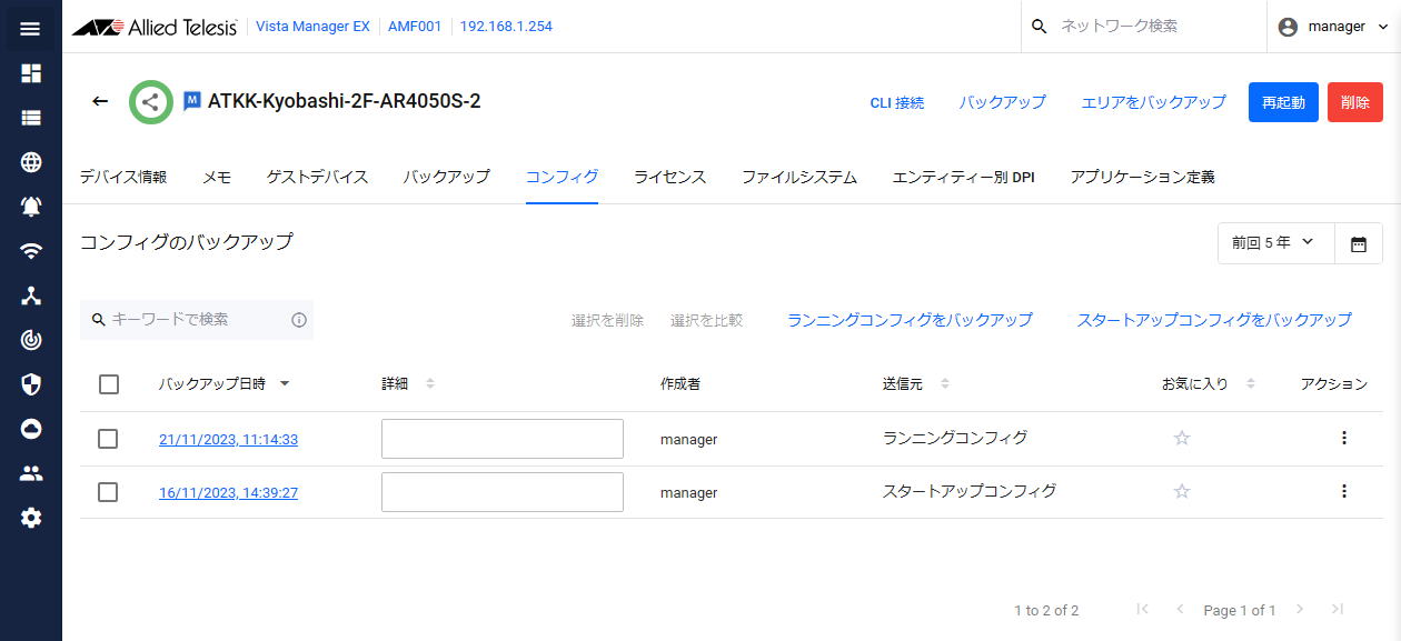 NoteAMFネットワークの登録後やバックアップファイルのリストア直後は、AMFネットワークの学習のため、AVM EXの応答に時間がかかることがあります。