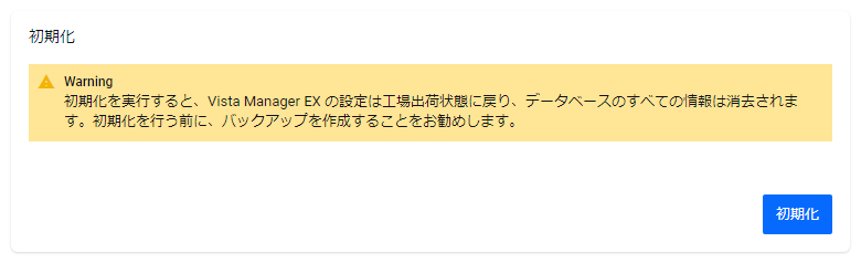 「初期化」ボタン | AVM EXの設定情報を消去し、システムを初期化します。 |