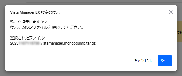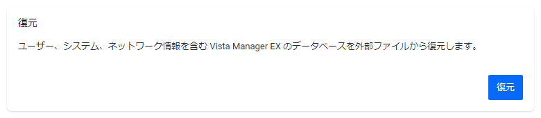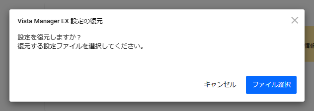 「復元」ボタン | AVM EXの設定情報を外部ファイルから復元します。 |