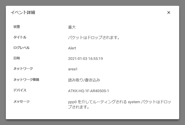 - AMFデバイスや無線APが正常にもかかわらず、重大(赤色)で表示される