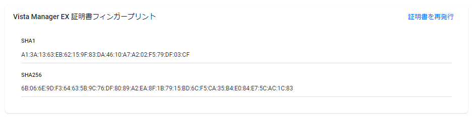 証明書を再発行 | AVM EXの証明書を再発行します。 |