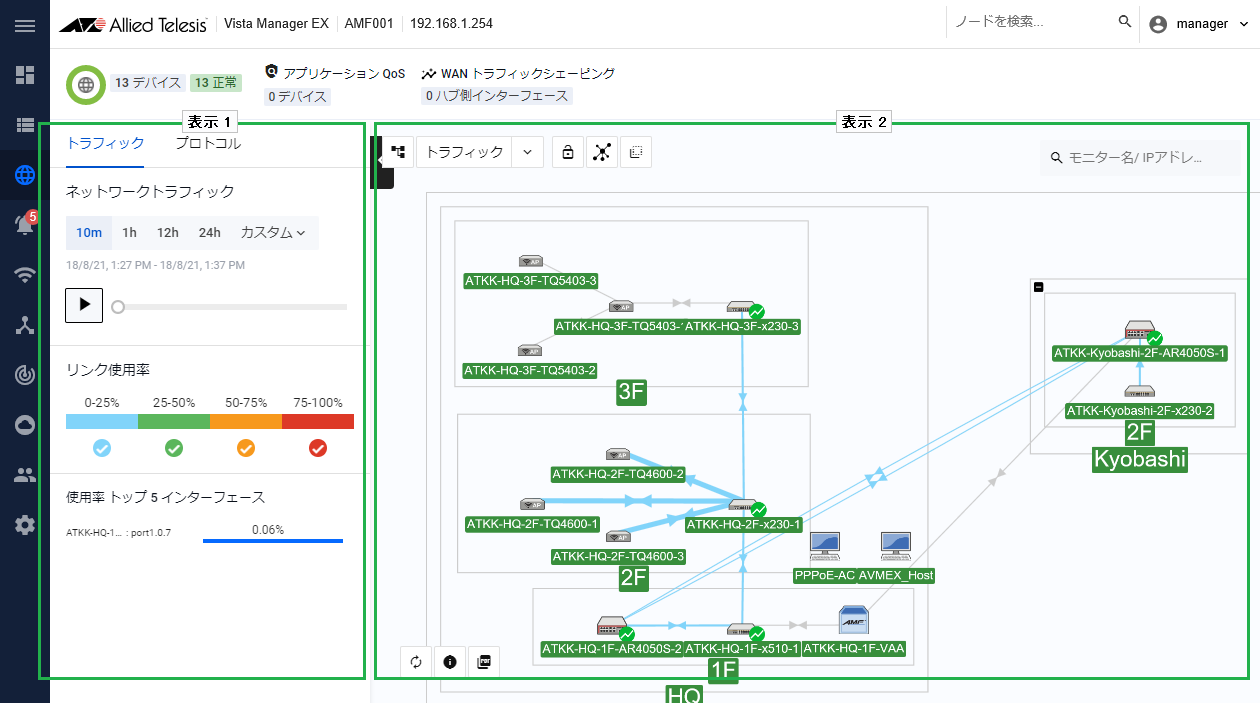 Note本書では、画面上の表示に合わせて、AMFにより管理されるAlliedWare Plus機器を「AMFデバイス」、これらにゲストノードとして登録された機器(無線AP、カメラなど)を「AMFゲストデバイス」と表記しています。