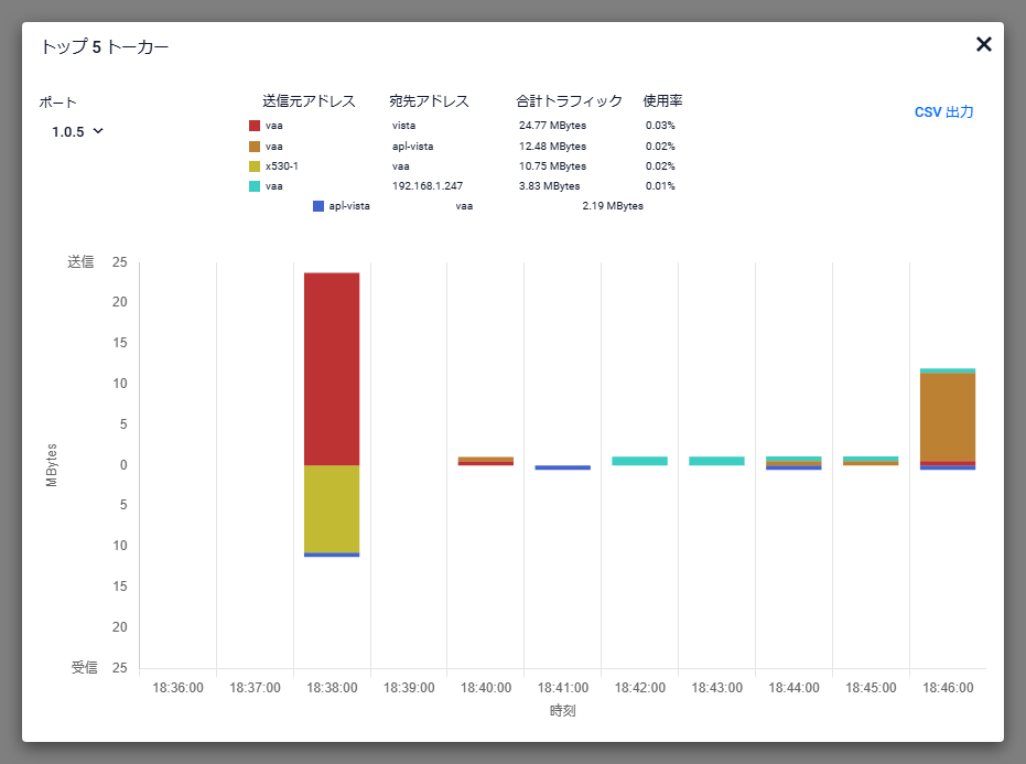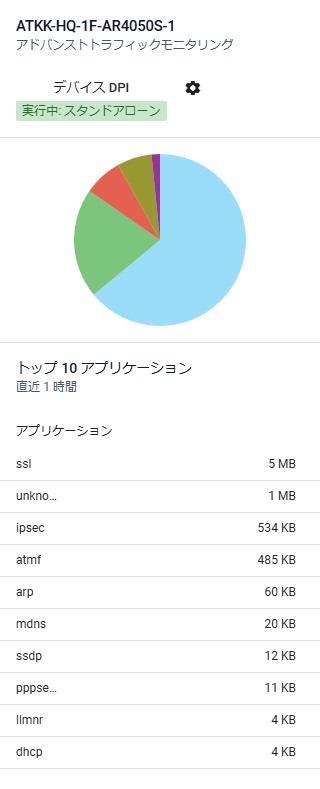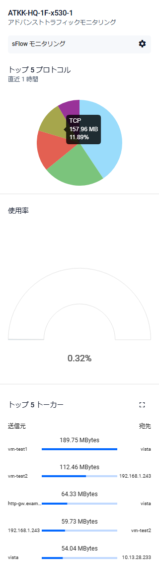 トラフィックモニタリング | トラフィック情報のデータ保管に使用している領域の容量を表示します。 |