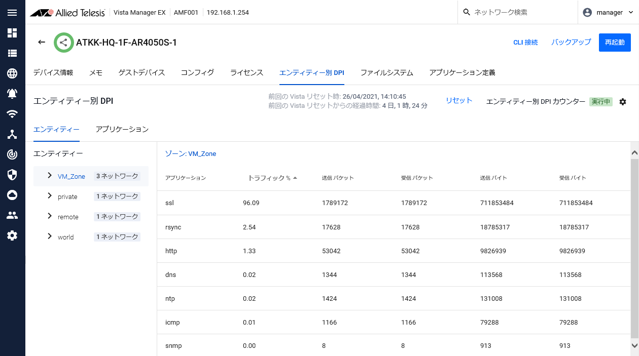 通信の詳細は、「AT-Vista Manager EX インストールガイド」の「ライセンス・動作環境」/「動作環境」の「使用するポート・プロトコル」をご覧ください。