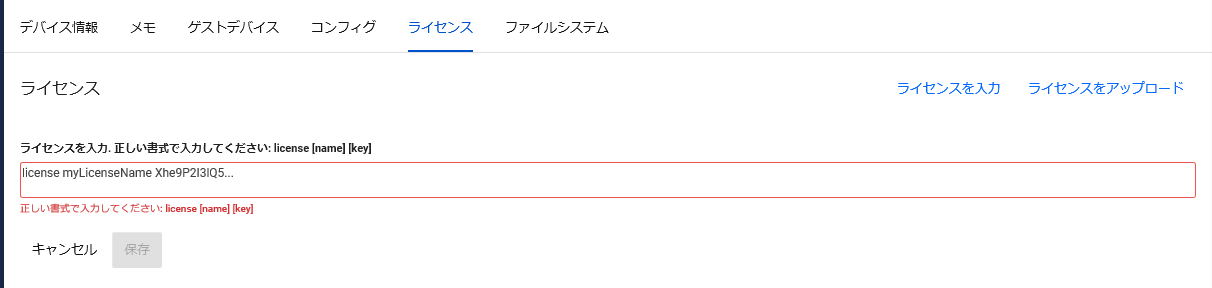 「ライセンスを更新」ボタン | AVM EXライセンスファイルをアップロードします。 ライセンスファイルにはAVM EX本体の基本パッケージライセンス、拡張ライセンス、プラグインライセンスなどを含みます。 |