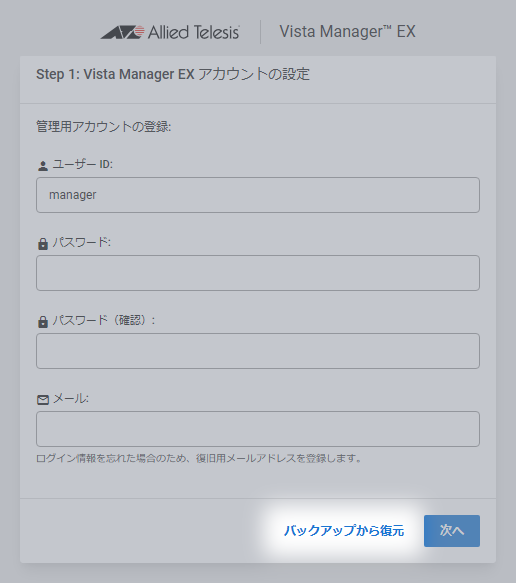 大規模なネットワークを管理する場合は、登録またはリストア後に1時間程度間を空けてください。