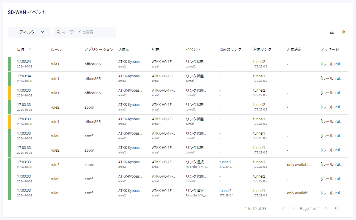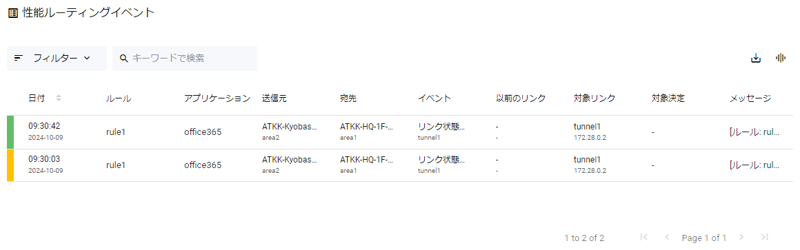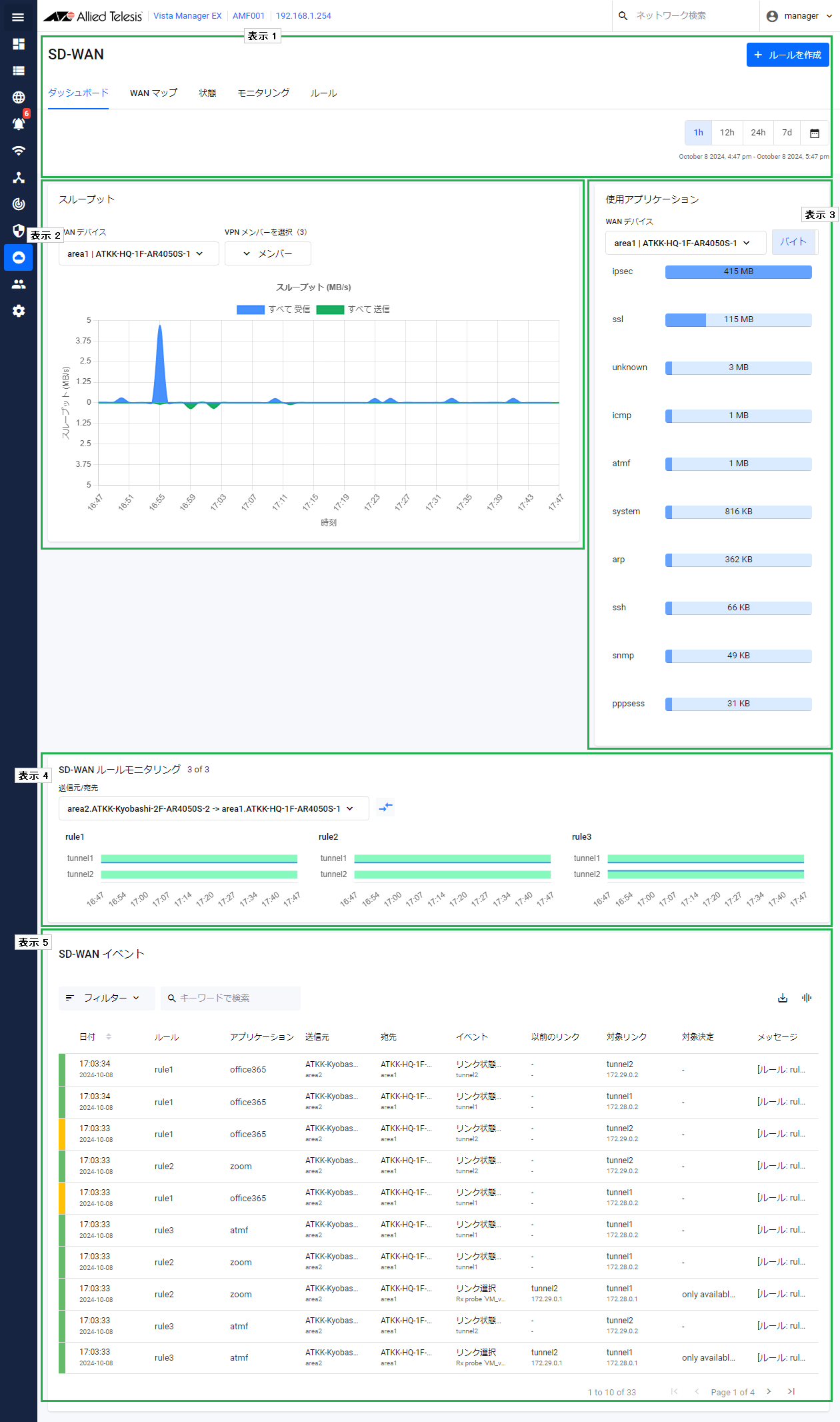 SD-WAN | SD-WANルールと統計情報のデータ保管に使用している領域の容量を表示します。 |