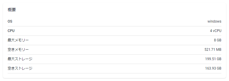 最大ストレージ | 動作PCに装着された、または、仮想化環境に割り当てられたストレージ(HDDまたはSSD)の容量を表示します。 |