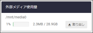 Note「取り出し」ボタンをクリックしたあと、「外部メディア使用量」項目にread-onlyと表示される場合がありますが、USBを安全に取り外すための処理によるもので、問題はありません。