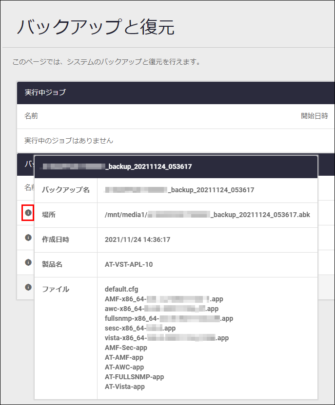 AT-VST-APL-06とAT-VST-APL-10の組み合わせでは、バックアップファイルを使用してリストアできません。