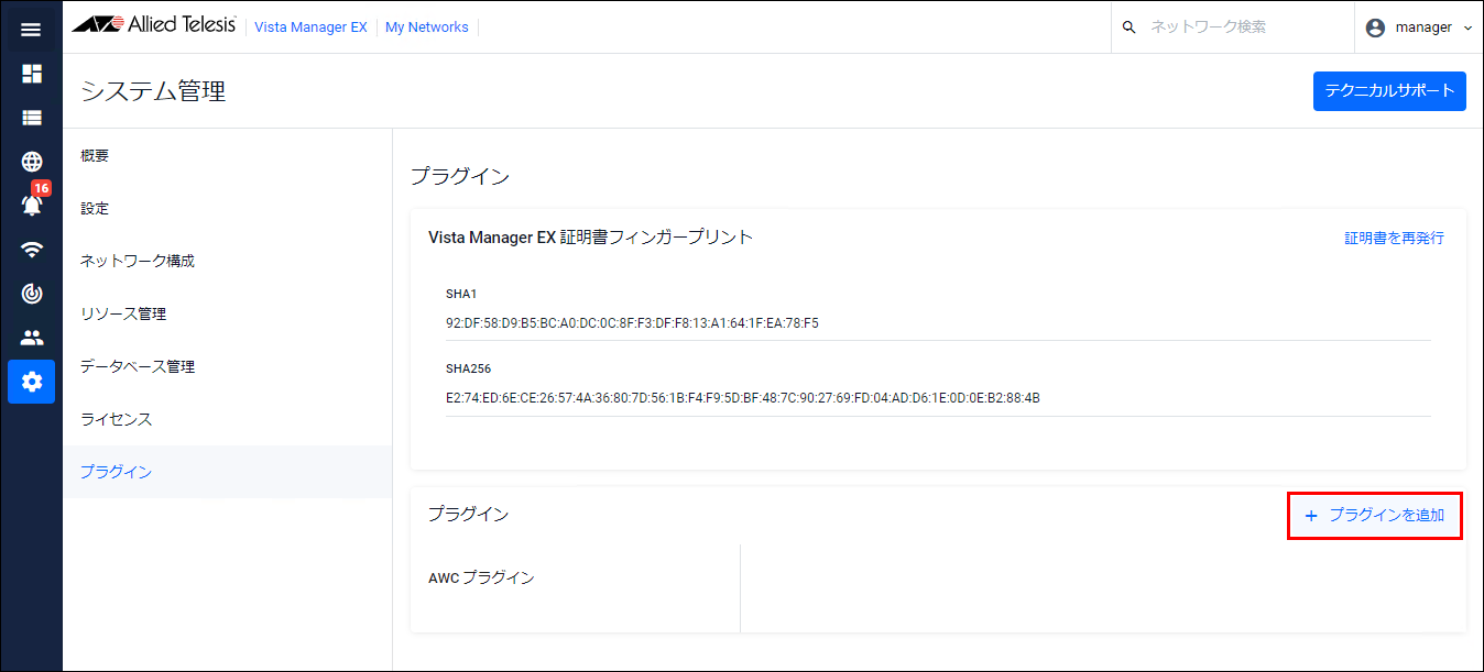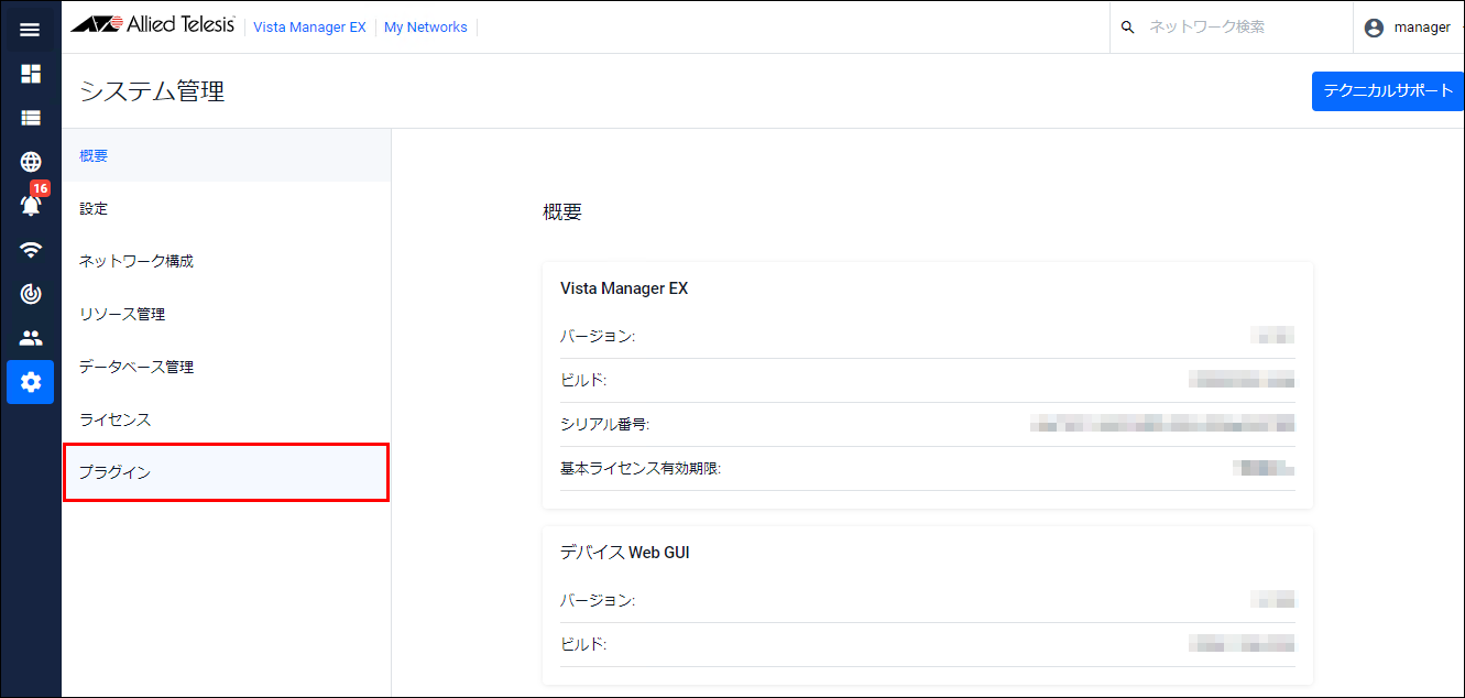 | ドキュメント | AT-Vista Manager EX(AT-VST-APL版)ベースリファレンスマニュアル AT-Vista Manager EX(AT-VST-APL版)リリースノート |