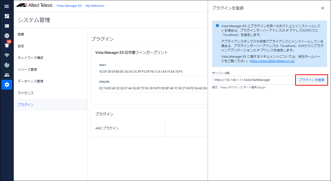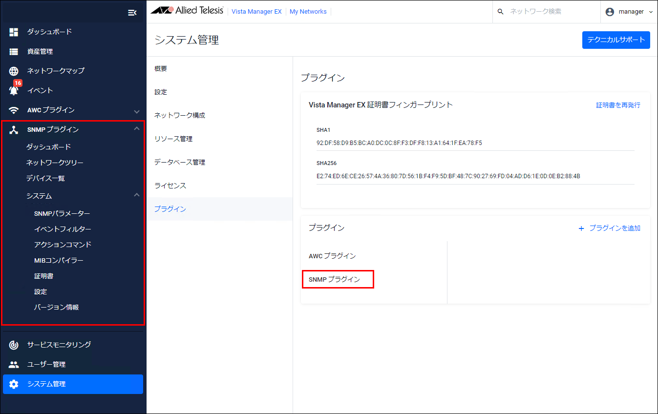 Noteなお、AT-VST-APLの設定画面では「SNMP Plug-in」と表示されますが、SNMPプラグインを示します。本バージョンのSNMPプラグインでは、SNMP v1/v2c/v3をサポートしています。