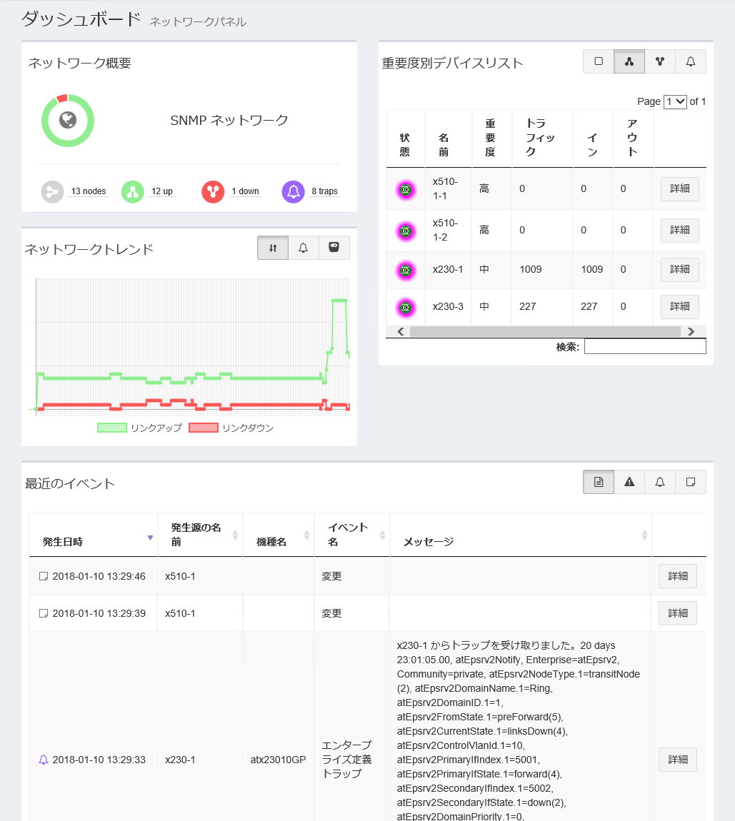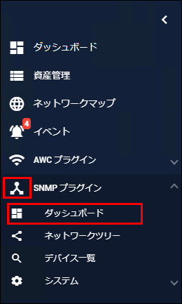 | リンクダウン状態(SNMPプラグインサーバーと疎通不能)のデバイス数が、赤色のアイコンとともに表示されます。 | |