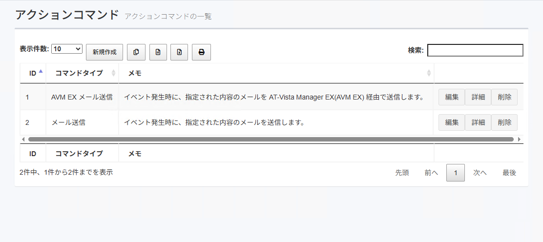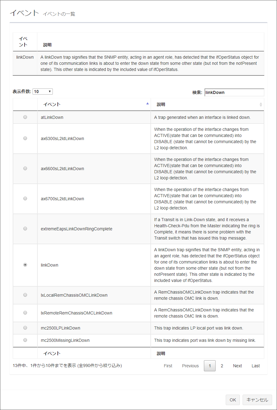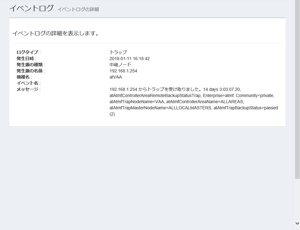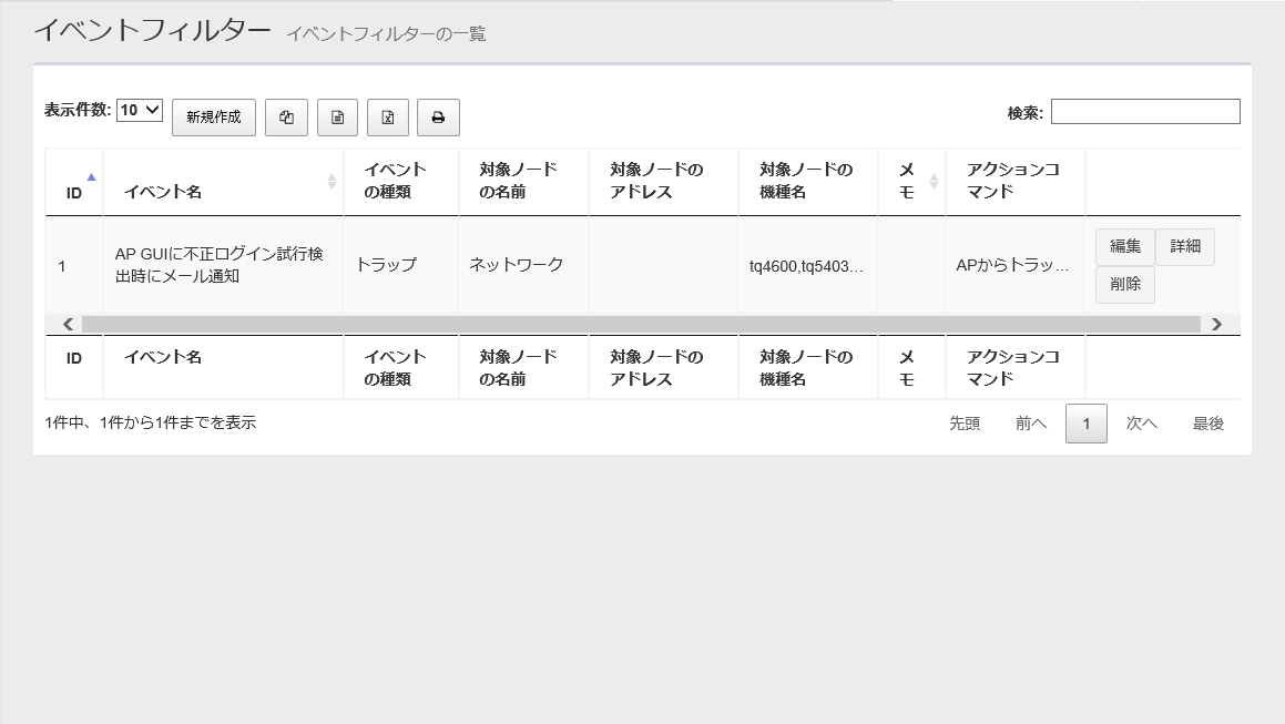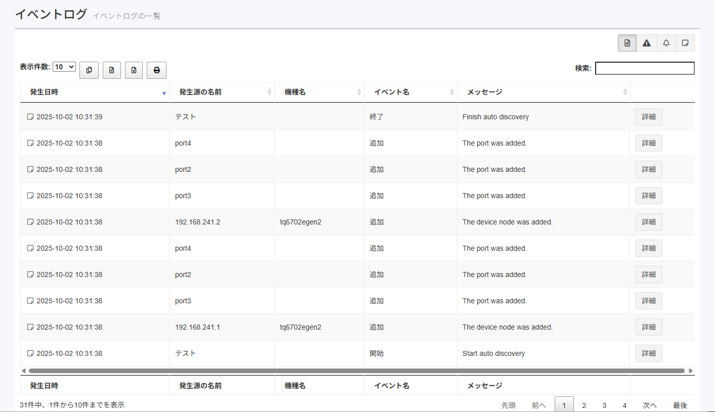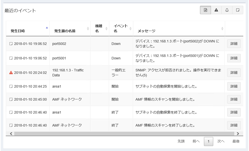「イベントログ」メニューをクリックすると、「イベントログの一覧」画面が表示されます。