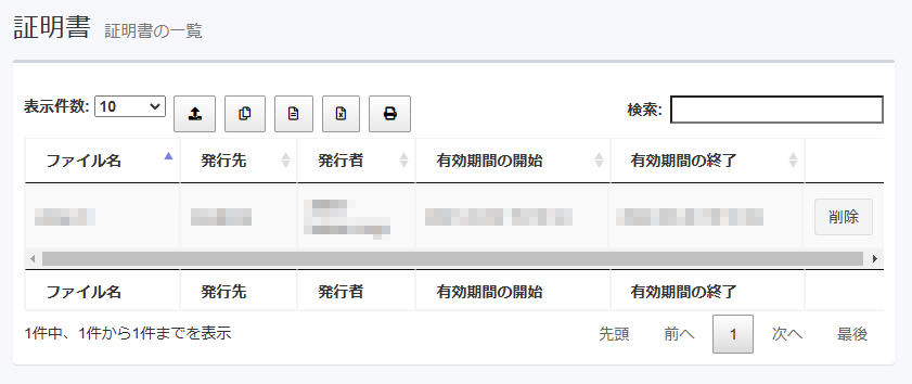 証明書ファイルをクリップボードにコピーします。 検索フィールドにより対象を絞り込むことができます。表示件数、ページは影響しません。 |
