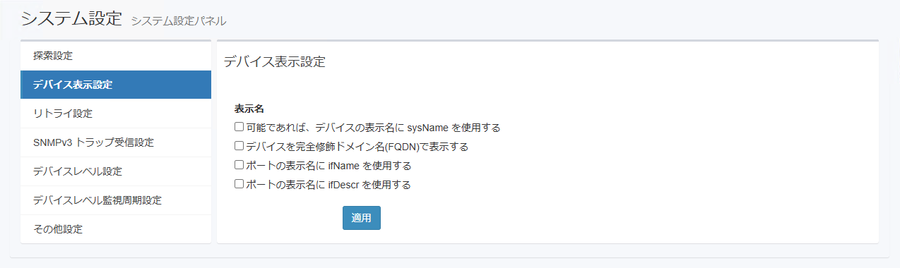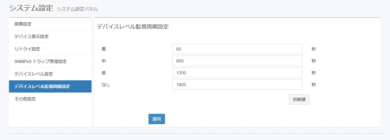 | 「適用」ボタン | デバイスレベル監視周期設定の変更内容を適用します。 |