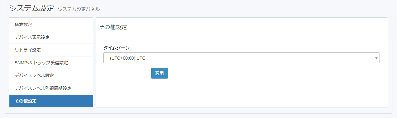 | 「適用」ボタン | 「タイムゾーン」で選択したタイムゾーンを適用します。 |