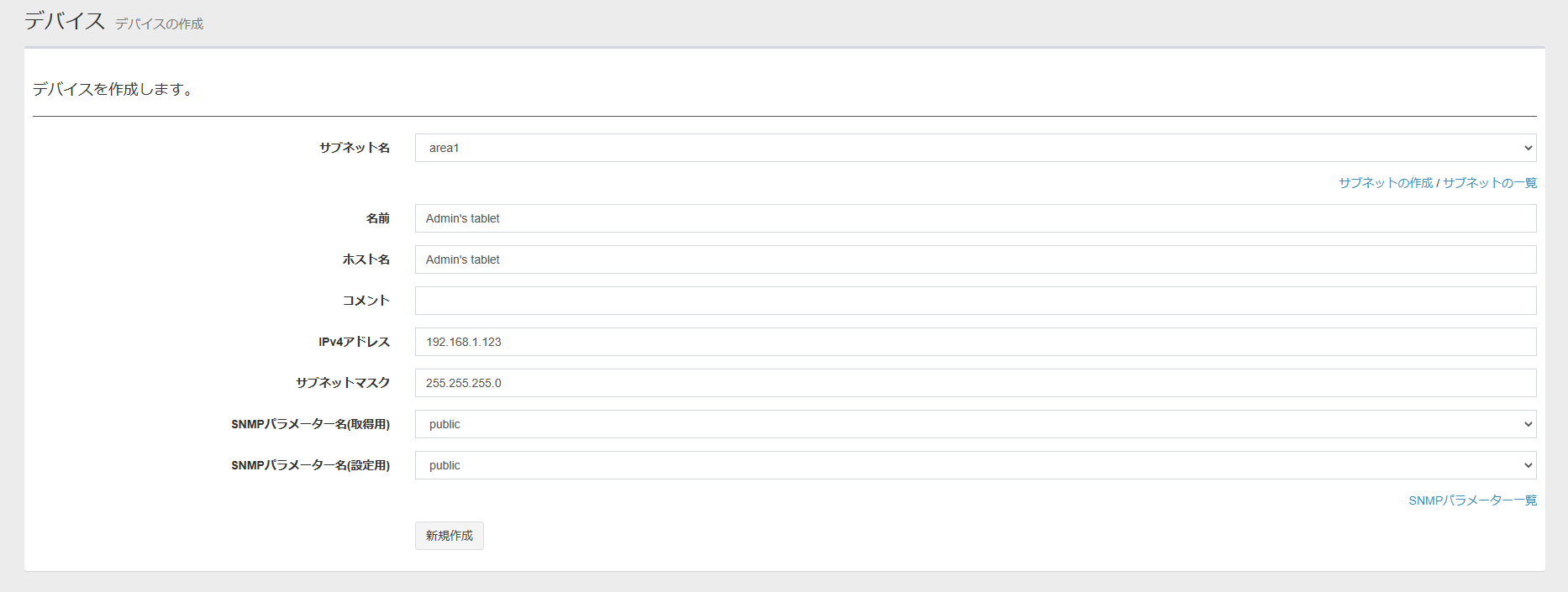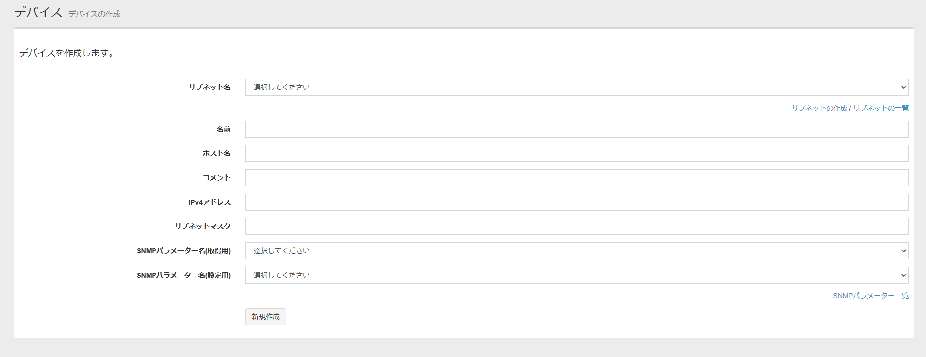 SNMPパラメーターの作成、編集を行ったあと、再度、「デバイスの作成」を手順1から行ってください。